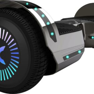 Hover-1 Chrome 7 Mph Hoverboard with LED Lights and Bluetooth Speaker, 6.5 In. Tires, 220 Lbs. Max Weight, Gunmetal