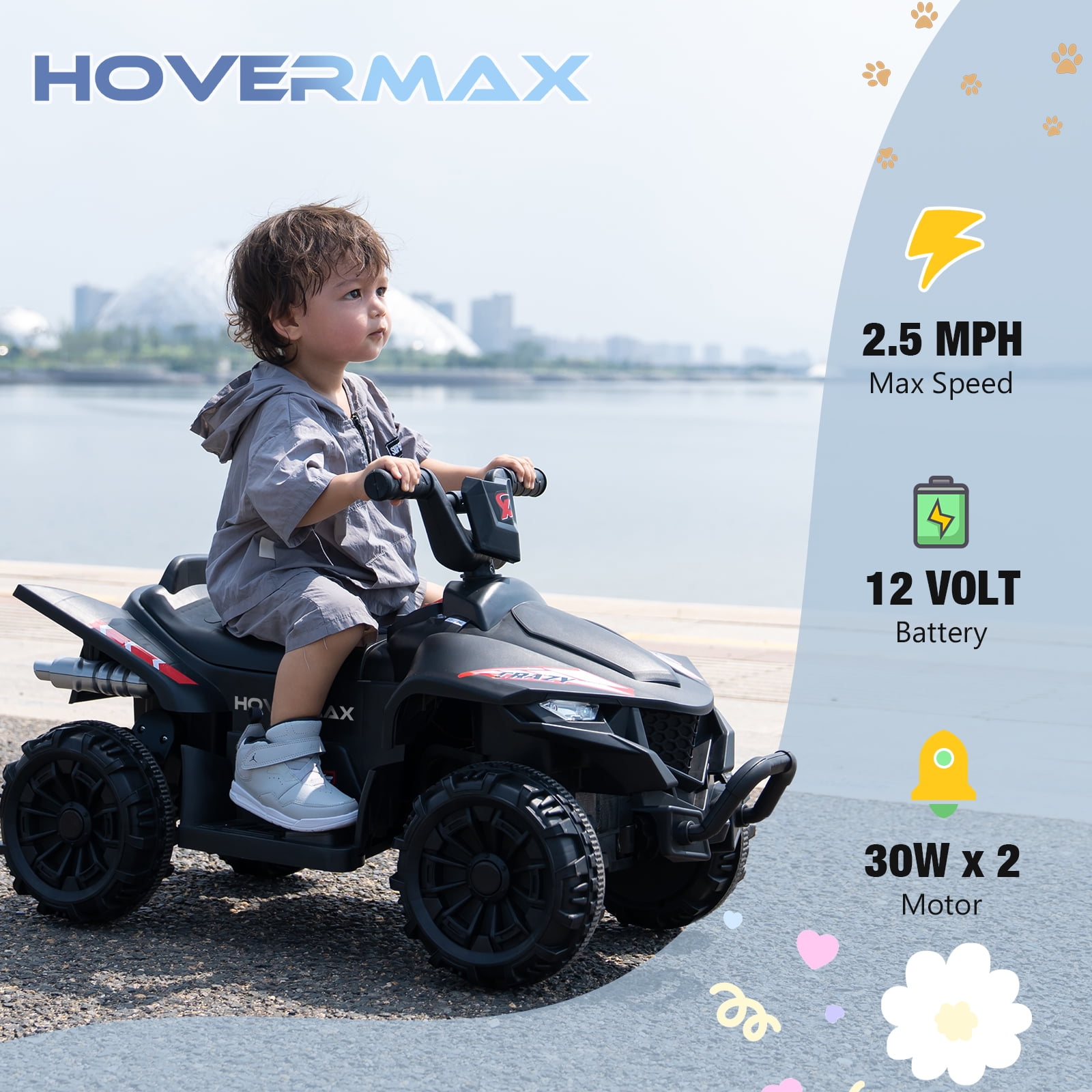 HOVERMAX 12V Kids Ride on ATV, 4 Wheeler Quad Toy Vehicle for Kids Aged 3+