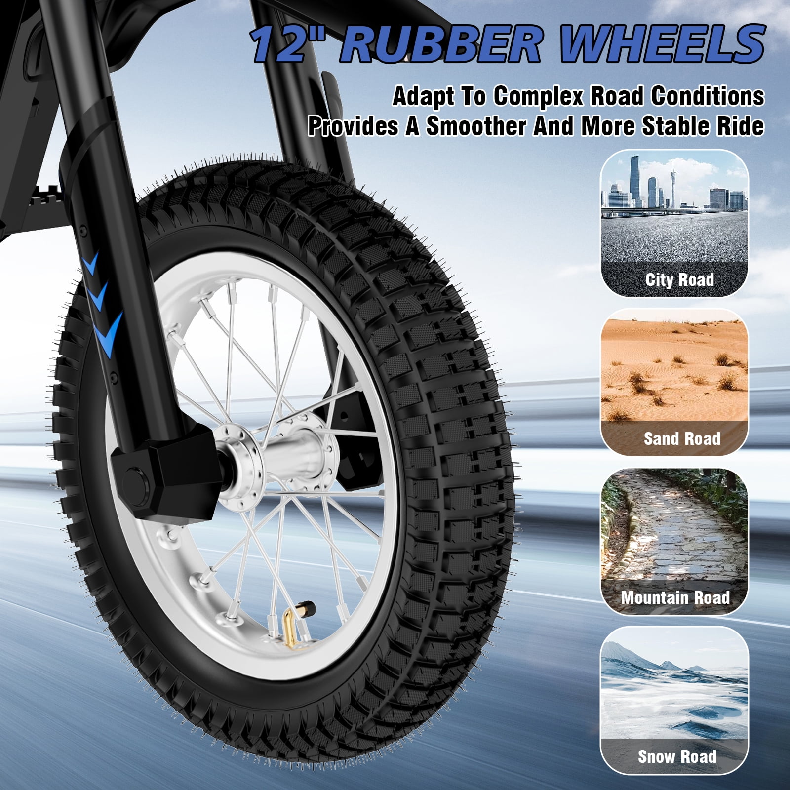 HOVERMAX H12M 36V Electric Dirt Bike, 300W Electric Motorcycle 15.5MPH Max Speed, Ride On Toys motocross for Kids Teens, Blue