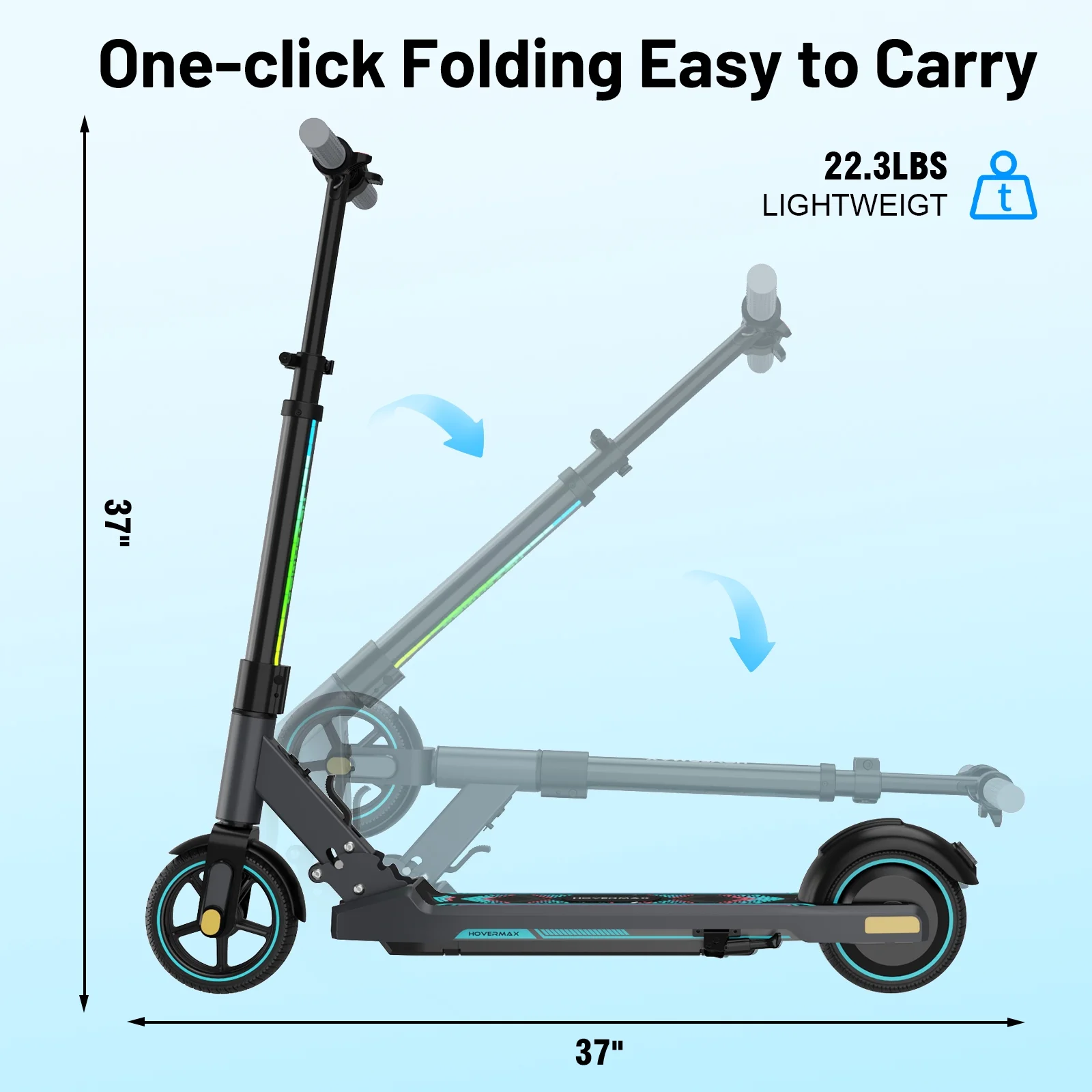 HOVERMAX Electric Scooter for Kids Ages 6-12, 150W Motor Max Speed 9.3 MPH, 5 Miles Range, Colorful LED Lights, Foldable kids electric scooter