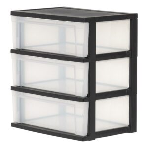 IRIS 3-Drawer Wide Plastic Storage Drawer, Black, Set of 2
