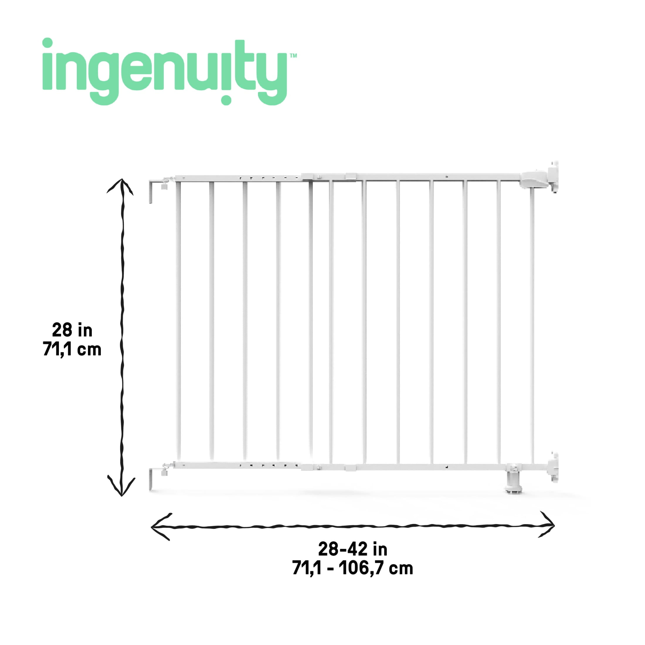 Ingenuity The Stairway 42W Series Safety Pet and Baby Gate, White Metal Finish, Openings from 28″-42″ Wide, Ages 6-24 Months