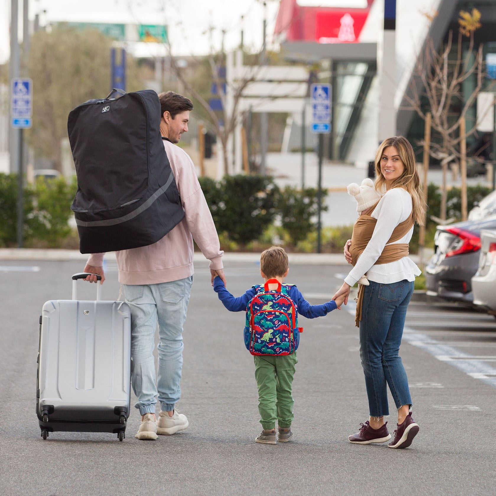$34.39The J.L. Childress Ultimate Padded Black Backpack Car Seat Travel Bag properly protects your child’s car seat when traveling and enables you to be hands-free to push strollers, pull luggage and wrangle your kids. Perfect for checking your car seat as luggage, bringing the seat for use on an airplane, or even for cruises and travel by train. The padded, harness-style backpack straps are ergonomically designed to position the car seat higher on your back for comfortable carrying. The Ultimate is the only car seat travel bag that offers thick padding on all sides and padded interior wings to protect your car seat’s safety features. This heavy-duty, durable, not-going-to-fail-you bag does have an ID card and dual-zipper opening to make it easy to put in and take out your car seat.
