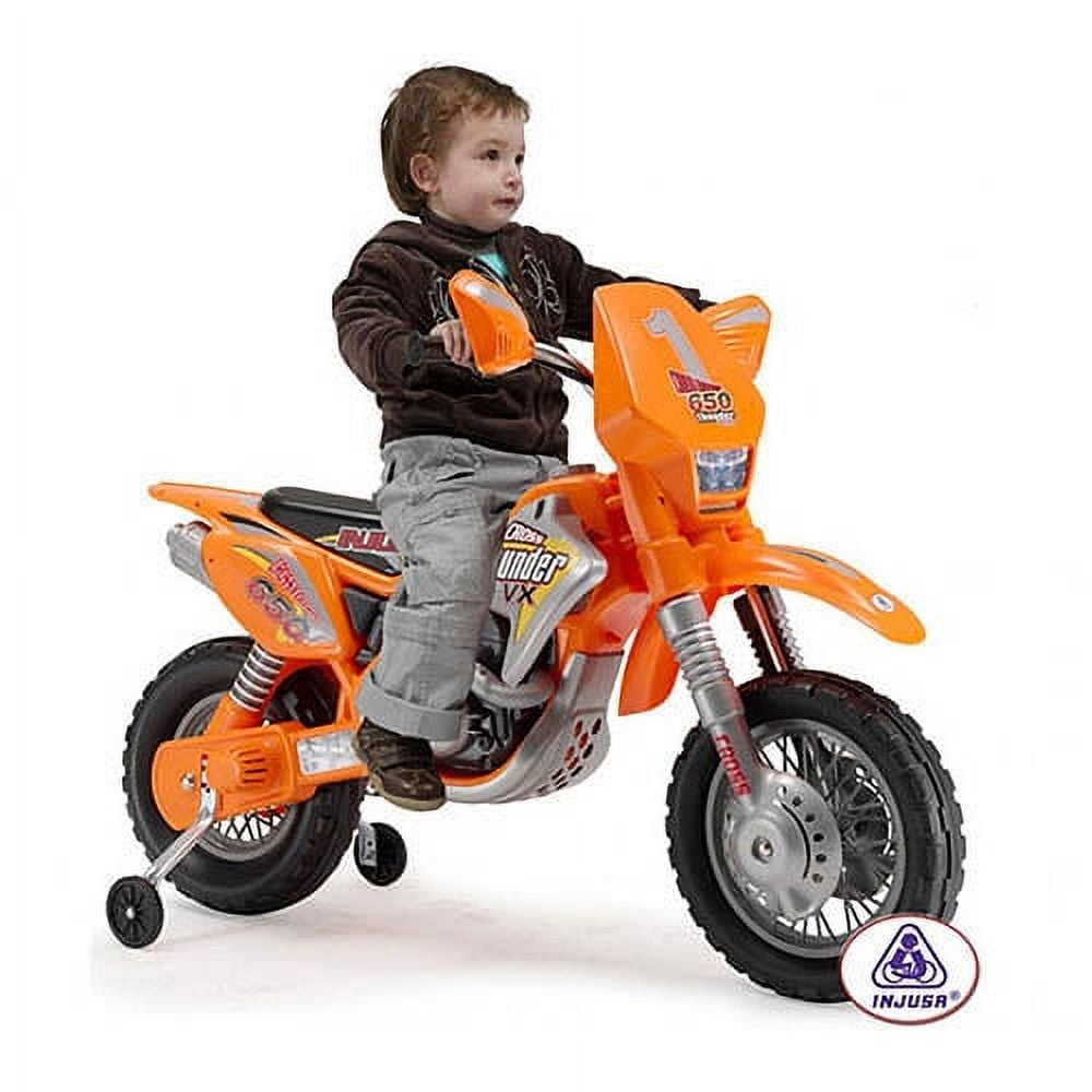 $239.94Original price was: $239.94.$196.94Current price is: $196.94.The Injusa Thunder Max VX 12V Dirt Bike is sure to delight those kids that are always on the go. It is sleek, detailed and has lots of cool decals. This vehicle is designed and built with quality specifically for children 3years of age and older. The kids ride-on travels at a speed of up to 4.5 miles per hour, which is just fast enough to thrill children while ensuring their safety. It also has training wheels for when a little extra stability is needed. The battery and charger are included so that children can get riding right away. It has a ride time of one to two hours so children can have extended periods of fun. The kids’ dirt bike is a fun way for children to improve coordination and partake in outdoor activities.