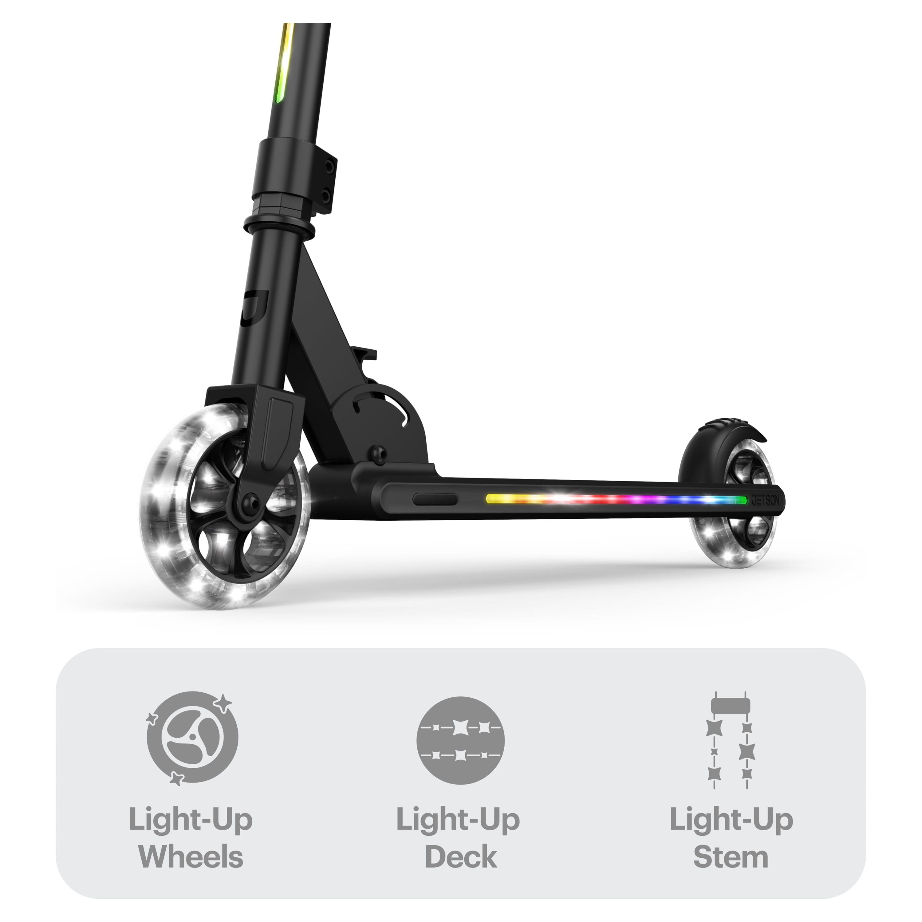 Jetson Mars 2-Wheel Folding Kids Kick Scooter with LED Light-up Stem, Deck and Wheels, Adjustable Handlebars, Rear Foot Brake; Ideal for Kids 5+, Black