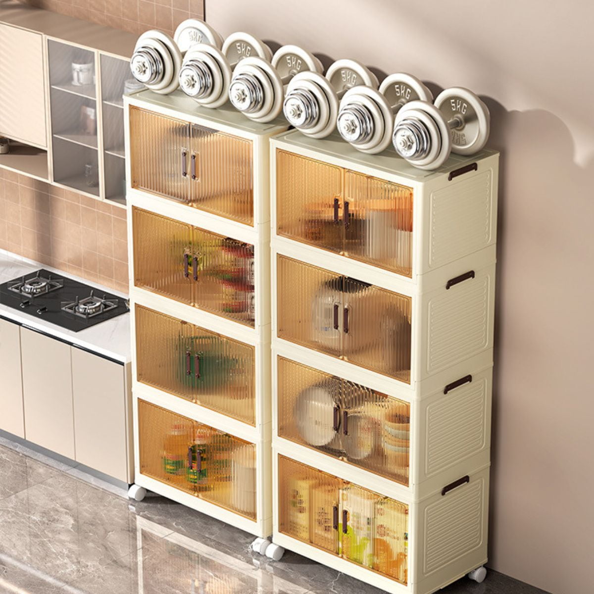 $61.92Magnetic Doors The front door of the storage bins have a built-in magnetic clasp to ensure that the doors won’t come open on their own. Rotating & Lockable Wheels Our storage containers have 4 rotating wheels, 2 wheels with buckles hold the storage organizer in place to prevent it from moving around. Lockable Buckle Each layer of the top has buckle both sides, which locks each layer of closet organizer firmly, no need to worry that the storage bins falling down. Leather Handle There is a leather handle on each door, making opening easily. The clear storage bins feature light brown doors, viewable, dustproof and waterproof.