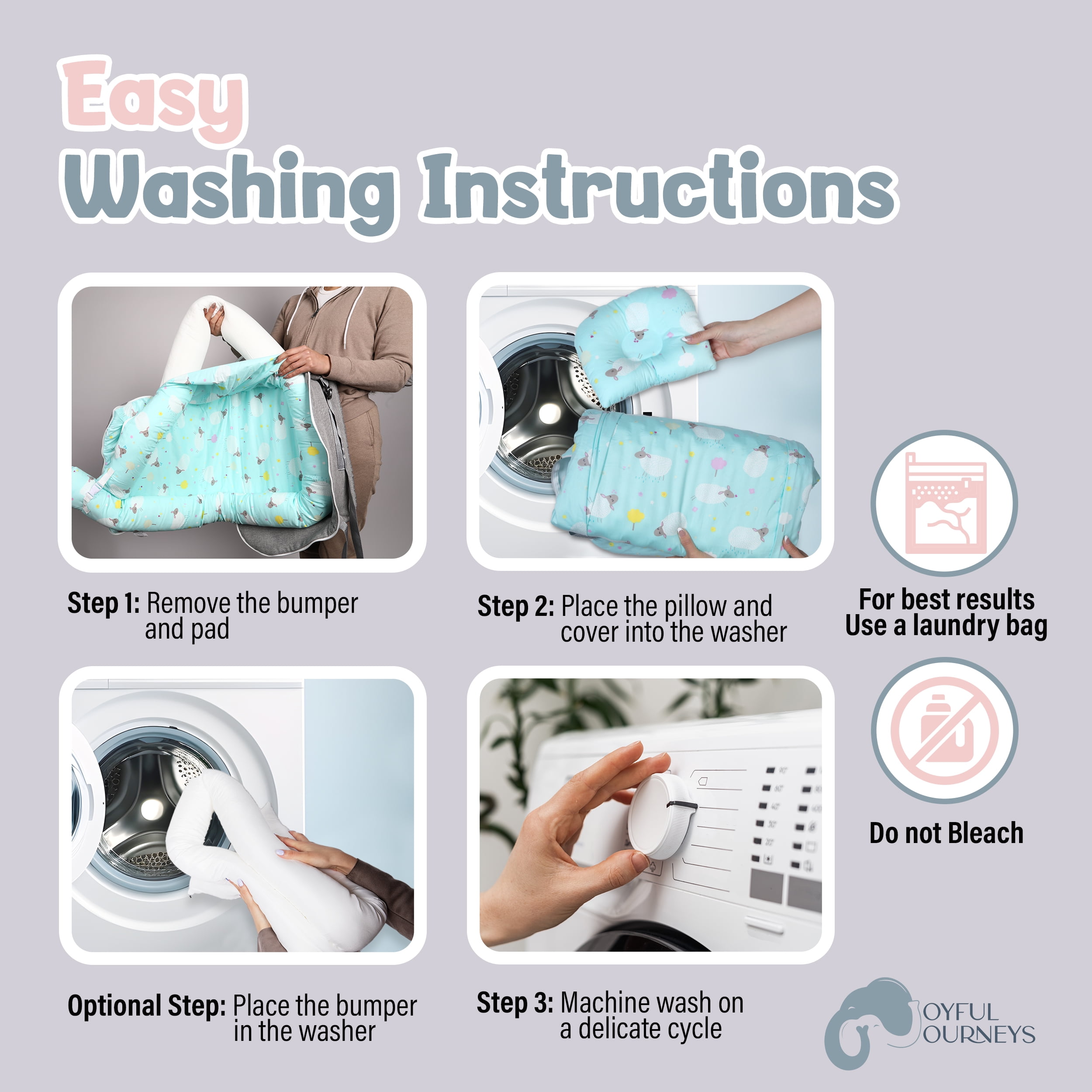 $48.98Introducing Joyful Journeys Baby Lounger Diaper Bag – the ultimate comfort companion for your little one on-the-go! The portable baby lounger is available in 5 adorable color patterns to match your preference. Crafted with 100% natural perle cotton for durability and softness. Our portable infant lounger is lightweight and easy to clean with a hidden zipper. Suitable for children ages 3 months to 18 months old, providing a cozy space for lounging. Experience unparalleled convenience with two side pockets providing storage for baby bottles. Also plenty of space for diapers, wipes and, an extra change of clothes. Making it a go-to solution for changing or lounging. Wherever you go, our portable baby lounger seamlessly adapts to the situation, making it the excellent choice for the dynamic lifestyle of the modern parent. Enjoy the premium quality materials and sturdy zippers incorporated into our baby loungers. The adorable, water-resistant and breathable design not only enhances the aesthetic appeal, but also ensures your baby experiences the utmost comfort in every use. We understand the demands of parenting, and that’s why our lounger for baby is designed for easy care. Simply remove the bumper and pad for a hassle-free machine wash on delicate cycle. Tumble dry low or lay flat to dry, allowing you to focus on what truly matters – cherishing moments with your little one. CPSC (2023) tested and CPSIA-certified to ensure compliance with safety standards. Doing a baby registry search? Add our baby bag for mom to your list of newborn essentials must haves! Smooth and Durable Our baby lounger diaper bag has 100% perle cotton filling, making it ultra-soft and durable. It provides a comfy environment, ensuring your baby’s relaxation and comfort Cozy Bumpers The baby lounger diaper bag features smooth zippers, ensuring easy and secure closure. It has ample space for all the baby essentials, including two side pockets large enough to easily hold baby bottles Sturdy Clasp This baby lounger diaper bag features a clasp for expanding the lounger to accommodate your growing baby. No need to worry about pesky ribbons catching your baby’s toes Water-Resistant Padding The padding ensures protection against spills and unexpected messes, maintaining a clean and dry environment for your baby. It is also easy to wash, making it perfect for busy parents