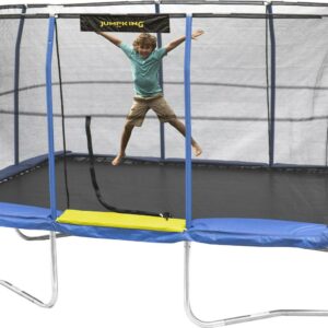 JumpKing Oval 8′ x 11.5′ Trampoline, with Enclosure, Blue/Green