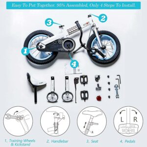 Royalbaby Boys Girls Kids Bike 14 In BMX Freestyle Black 2 Hand Brakes Bicycles with Training Wheels Child Bicycle