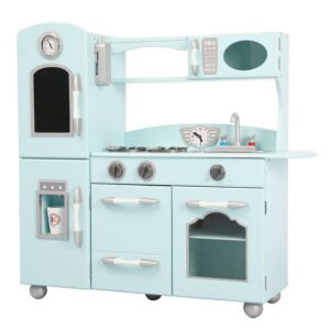 Teamson Kids Little Chef Charlotte Play Kitchen Set – Toddler Wooden Kitchen Playset with Stove, Sink & Refrigerator, Toy Cooking Set for Ages 1-7, Mint/Gold