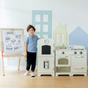 Teamson Kids Petite Versailles Classic Wooden Play Kitchen with Toy Set with Sink, Stove & 11 Accessories