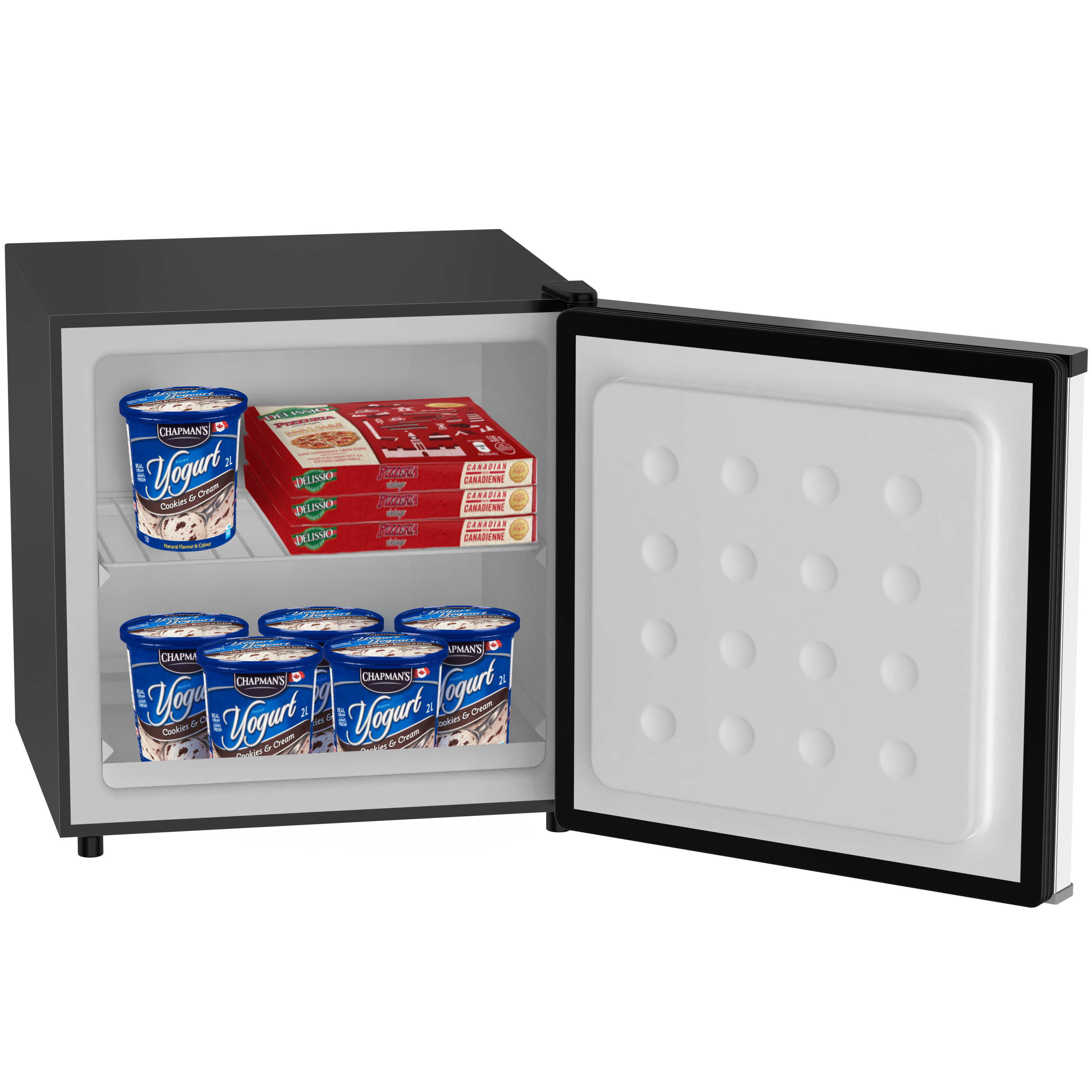 Mini stainless steel compact countertop freezer, 1.1 cubic ft. a single door upright freezer with reversible door, and removable shelves for home, dorms, apartment and office