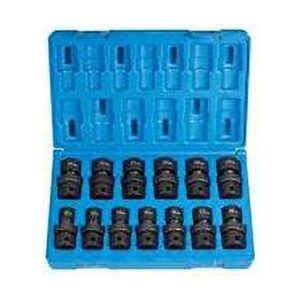 This impact socket set features high torque drives. The feature limits the amount of wear on the corners of the fastener and the socket. It also improves the strength of the socket, transfers increased torque to the fastener and allows easier access to tight areas. Each socket is thoroughly made with the correct balance of strength and durability and is tested to the highest specifications to deliver outstanding performance at the most competitive cost. Set contains the following sizes: 12mm, 13mm, 14mm, 15mm, 16mm, 17mm, 18mm, 19mm, 20mm, 21mm, 22mm, 23mm and 24mm in a molded storage case.1/2″ Dr. 13 Pc. Standard Metric Univ. Set – 12 Point