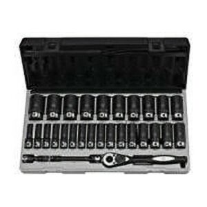 The thin wall design of chrome hand sockets are combined with the strength and durability of Grey Pneumatic impact sockets to create the Duo-Socket . This 29 piece set is built specifically to address the needs of the professional technician using hand tools, cordless impact tools and air tools. The Duo-Socket provides one socket for all applications. This set includes the following: 24 tooth quick release ratchet, 3″ and 6″ wobble extension and the socket sizes include: Standard Metric: 10mm, 11mm, 12mm, 13mm, 14mm, 15mm, 16mm, 17mm, 18mm, 19mm, 20mm, 21mm, 22mm, 23mm, 24mm, 25mm, 26mm, 27mm, 28mm, 29mm, 30mm, 31mm, 32mm, 33mm, 34mm, 35mm, 36mm.