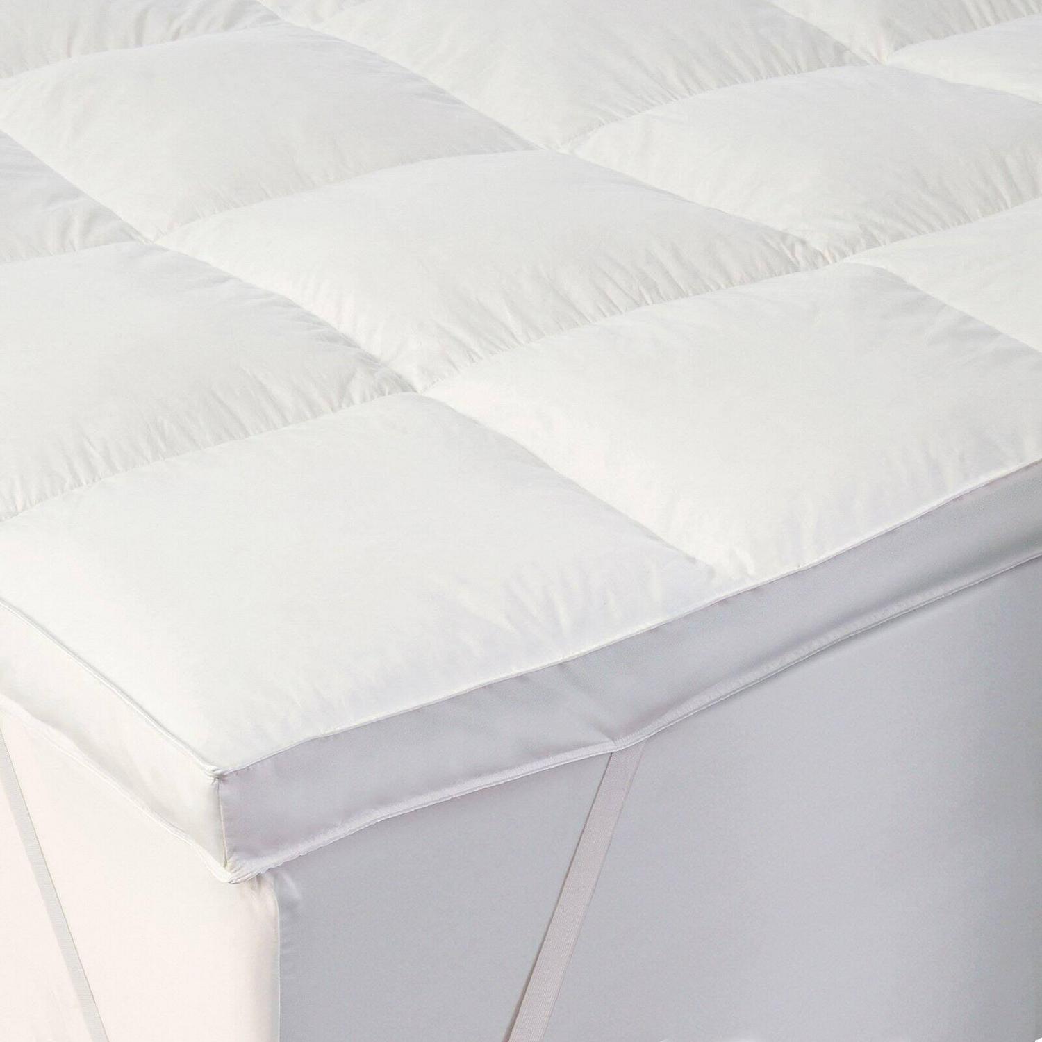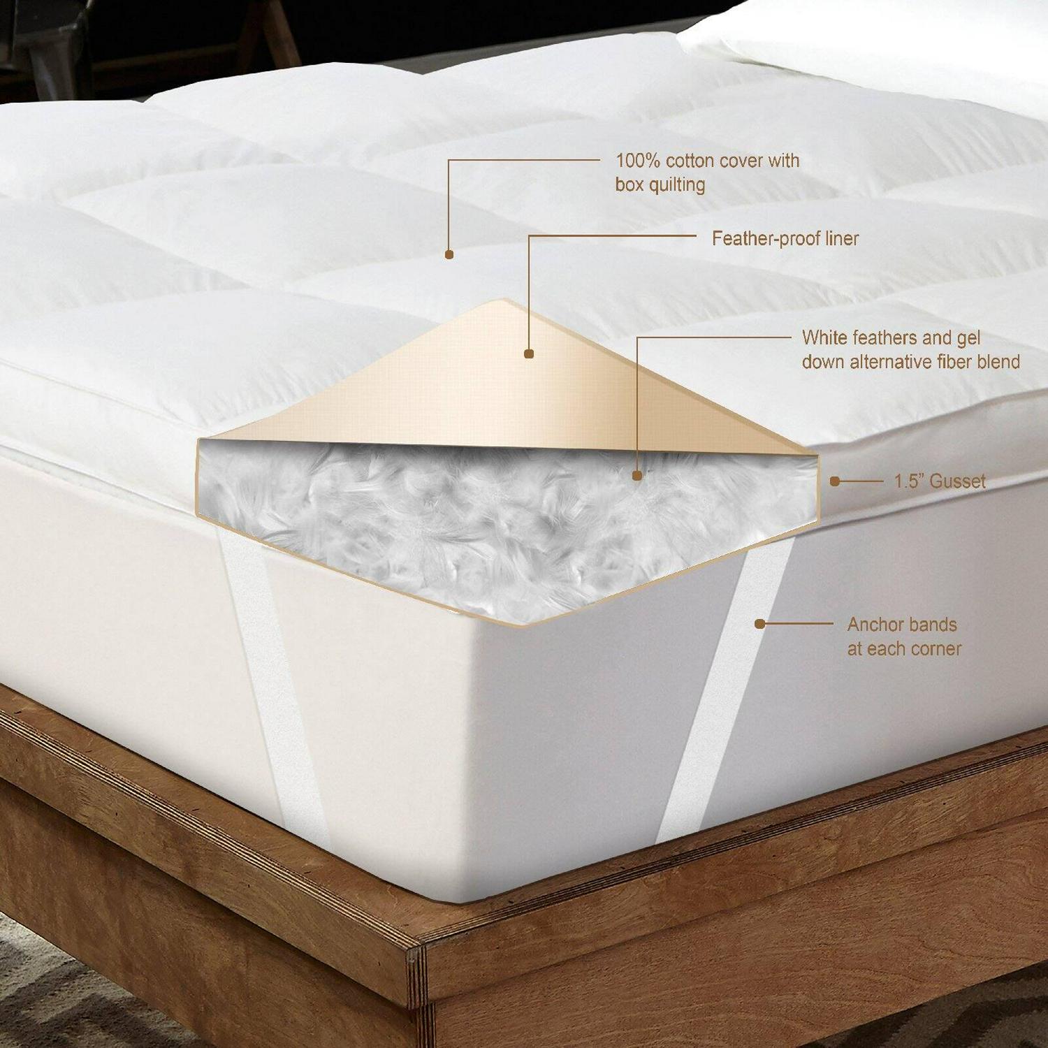 Create a cozy oasis in your bedroom with the ultra-soft 1.5 in. Featherbed by Hotel Laundry. This topper easily anchors to most mattresses up to 18 inches thick to deliver comfy snoozes every single night. Natural, white feathers and down-alternative gel fibers blend together in a luxuriously plush filling. For a quick cleaning, simply throw the included, hypoallergenic cover in the washing machine and tumble dry low. Choose from the available size options to best suit your needs.