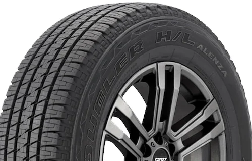 The Dueler H/L Alenza with UNI-T and/or UNI-T AQII technology is Bridgestone’s Crossover/SUV Touring All-Season light truck tire developed for the drivers of premium crossover and sport utility vehicles, as well as light duty pickup trucks. Bridgestone offers a 65,000-mile treadwear warranty with this model. The Dueler H/L Alenza’s symmetric tread pattern has been riding and noise tuned to enhance comfort. Large shoulder blocks and a continuous center rib boost responsiveness and highway stability, while wide circumferential grooves, lateral notches and sipes help increase stormy weather traction.