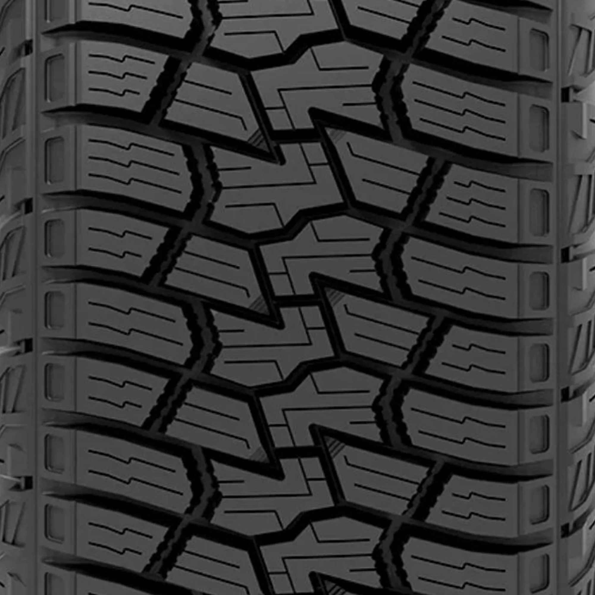 The RBP Repulsor A/T Plateau is a premium all-terrain tire engineered for SUVs, light trucks, and CUVs. With its reinforced, aggressive blade-style sidewall pattern resists damage from stones and sharp debris while boosting off-road handling and control. Bite into snow and ice, delivering traction and control on winter roads. 50,000-mile limited treadwear warranty backed by the Rolling Big Promise, including road hazard coverage and 2-year limited replacement policy. It is built to take you anywhere with confidence — from muddy trails and rocky terrain to snowy roads and highways. It meets industry severe snow service requirements qualifying for the three-peak mountain snowflake (3PMSF) symbol. Specially formulated advanced all-terrain compound for extended tread life and even wear pattern