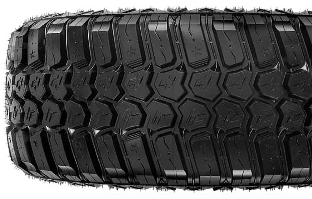 The Rolling Big Power Repulsor X/T RX by excels in extreme terrains. Its large staggered tread elements, wide grooves, and open shoulder design enhance traction on various surfaces, from deep mud to loose dirt. The upper sidewall design and biting edges provide maximum grip, while maintaining minimal road noise and a comfortable ride quality. RBP offers a 50,000-mile treadwear warranty with this model. The Repulsor X/T RX combines durability, reliability, and versatility, making it a top choice for those seeking both off-road prowess and on-road comfort. This tire delivers exceptional off-road performance, handling rain, sleet, mud, and snow with ease. Despite its rugged capabilities, it ensures a smooth ride, making it ideal for both off-road adventures and daily commutes.
