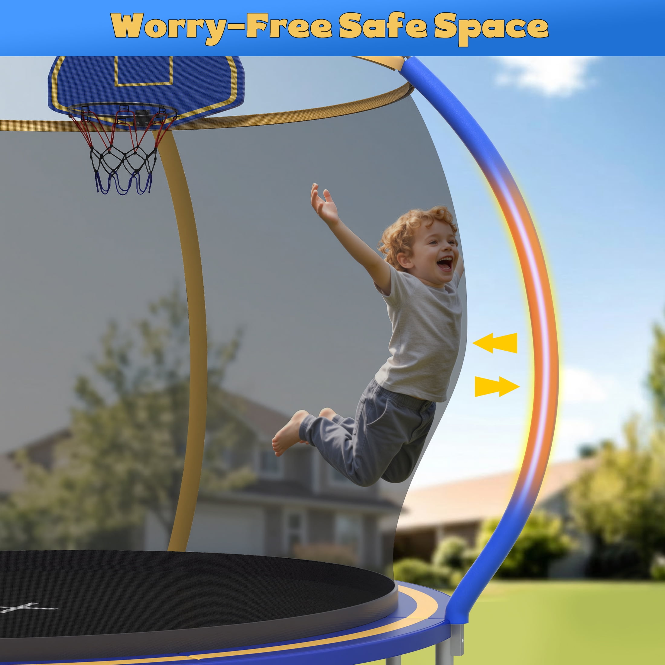 10 FT Trampoline for Kids with Basketball Hoop, SEGMART Upgraded Kids Outdoor Trampoline with Enclosure Net and Ladder, Heavy Duty Round Recreational Trampoline for Indoor Outdoor Backyard