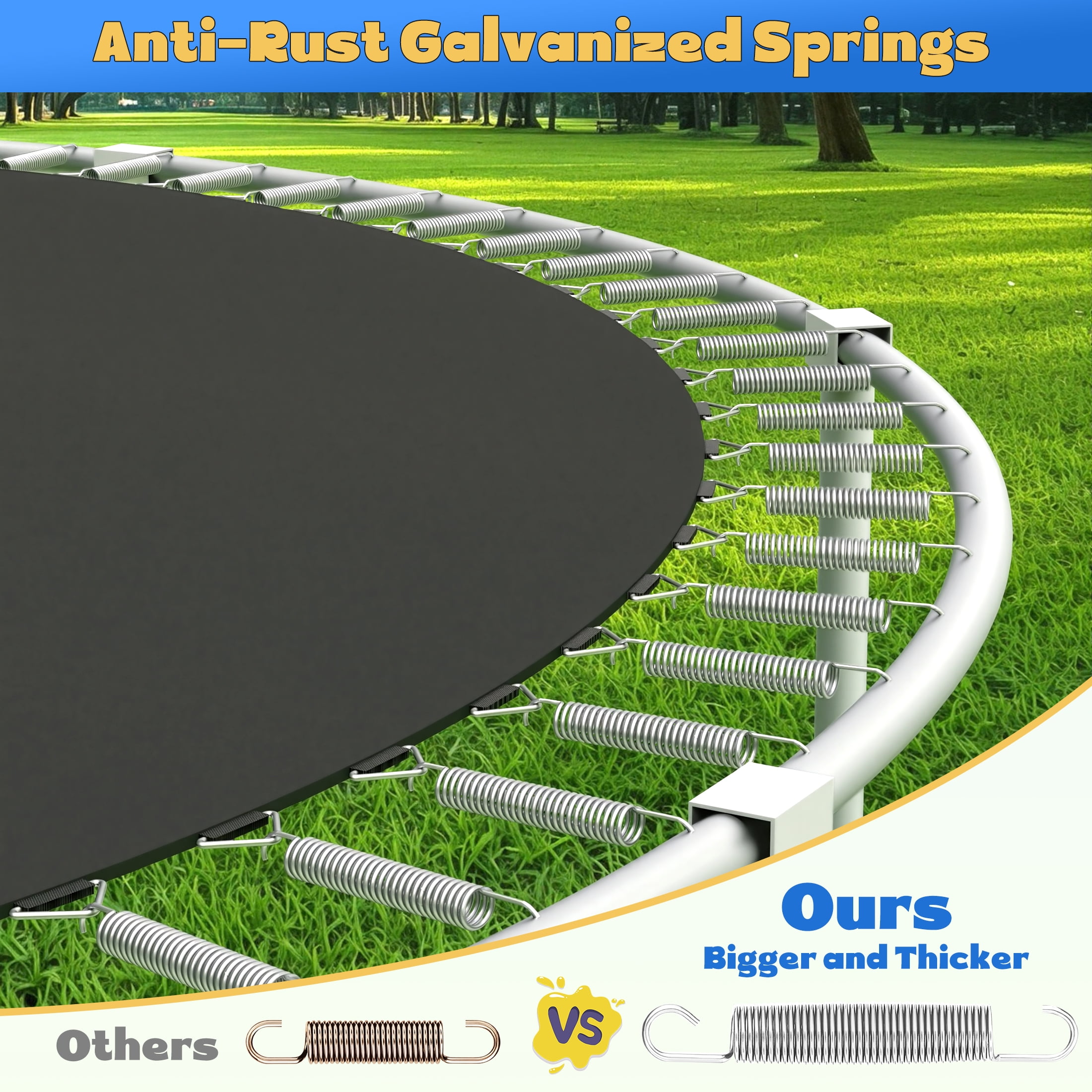 ✨【Effective & Fun】 – Provide your kids with a safe and fun way to exercise, and improve coordination, balance, and cardiovascular health effects. SEGMART 10FT trampoline comes with a gap-free enclosed net, making it a great addition to your backyard, perfect for family use. ✨【Solid Steel Structure】 – The frame consists of galvanized rust-resistant steel. They are durable and rust-resistant and also provide longer service life for the trampoline. a spacious premium UV-protected bounce mat, heavy-duty frame and coiled springs, wear-resistant protective foam, and more, making your trampoline able to be used for a long time, family and friends able to bounce for years to come. ✨【Maximized Safety】 – Supported by strong and supple springs to assure stability with each bounce, SEGMART 10FT trampoline uses extra springs to ensure gentle impact, and avoid painful tension on your feet and joints. ✨【U-shaped Legs】 – Metal legs are arranged averagely and assembled under the 10FT trampoline. They offer enough stability and support for the whole trampoline. U-shaped legs can also disperse much more weight and enable the whole trampoline to be more stable. It is also more convenient to be assembled on the ground. In addition to solid construction, a large capacity makes you feel safer and allows kids can play and jump on this trampoline together. ✨【Kid-Friendly Design】 – The 10 Feet SEGMART Trampoline is outfitted with a safety skirt along the edge to protect your kids from any potential injury while jumping. The sturdy ladder provides convenient navigation on and off the trampoline. The round edge is designed to protect kids from scratches and pinches.