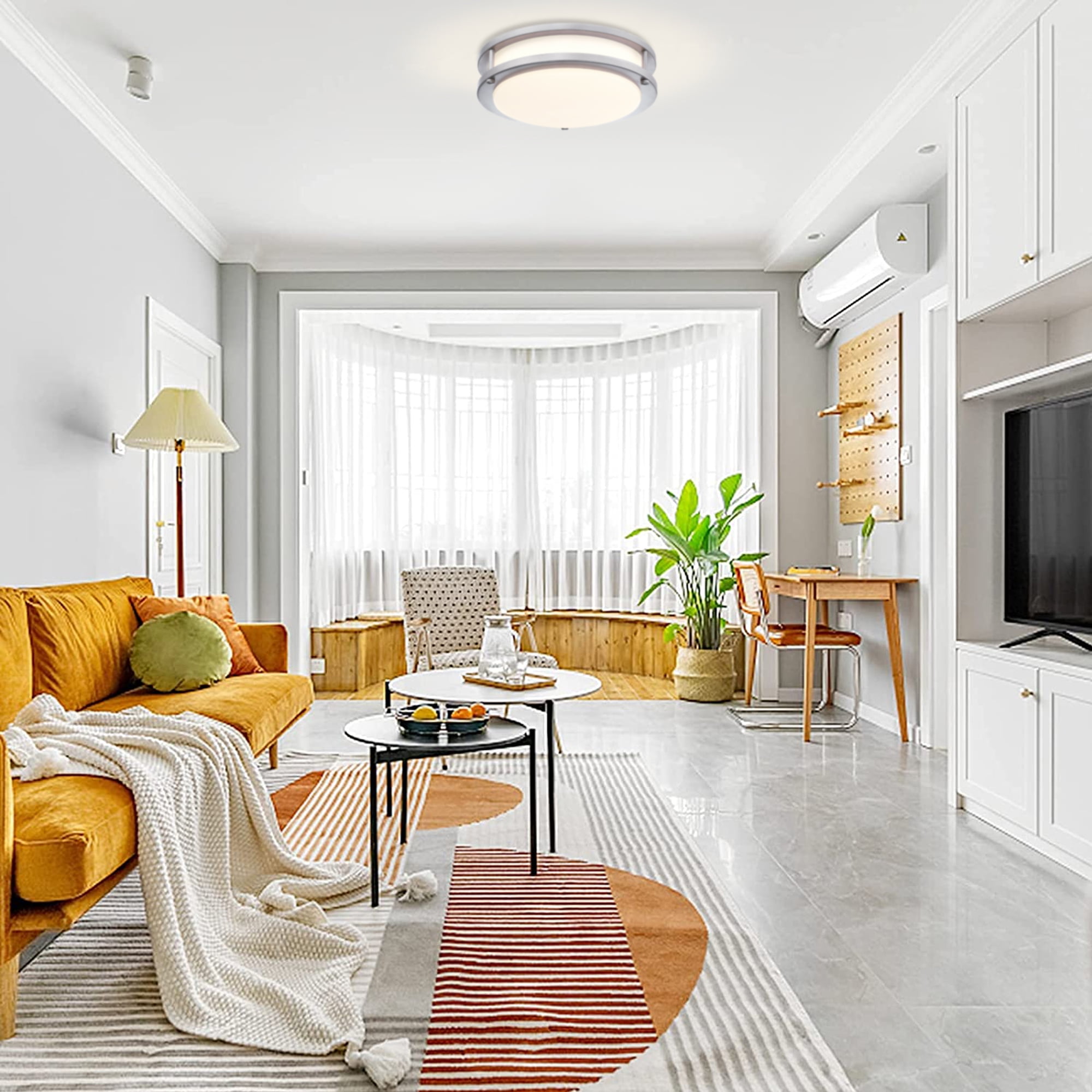 Simplistic line design looks bright and tasteful, matches most styles of interior furnishing, provide an energetic, clean led ceiling light to your living environment. If you needed something to illuminate your home and this is the best option. This kitchen light fixtures for ceiling easily mounts flush with the ceiling, and the low profile design keeps it out of the way of closet doors. The protective brushed nickel finish will look great for years to come, and the white lens diffuses the LED light evenly. You won’t see any dark spots or shadows. CCTTunable:2700K/3000K/3500K/4000K/5000K(986/1048/1129/1078/960)Lumens switch adjustable. All light color bulit in one LED light fixture. You can choose one color you love for the location, Warm white (2700K/3000K) or bright white (3500K/4000K) or daylight white (5000K).” Provides uniformed bright ceiling light without flickering or humming noises, which helps reduce strain from harsh glare of traditional lighting and creates a nice living environment for your home or office. Each flush mount ceiling light has a clean, modern design that is ideal for low ceilings or minimalist spaces. With it’s dry location rating, these flush mount LED ceiling light can be used indoor, kitchen, bathroom, bedroom,patio, porch, entryway, hallway, closet, basement, or any space in your home. Easy Installation – Provided with needed mounting hardware, while also designed for easy installation of led ceiling light. cETLus listed and 90 Days limited warranty: we guarrantee high quality and safe product to our consumer