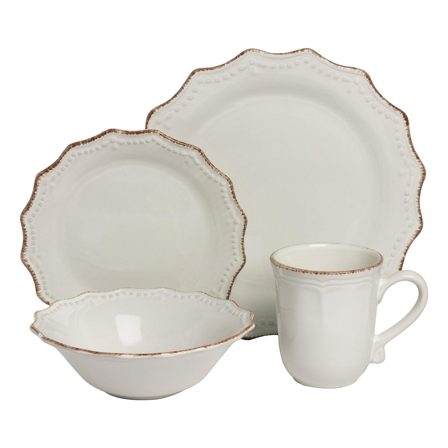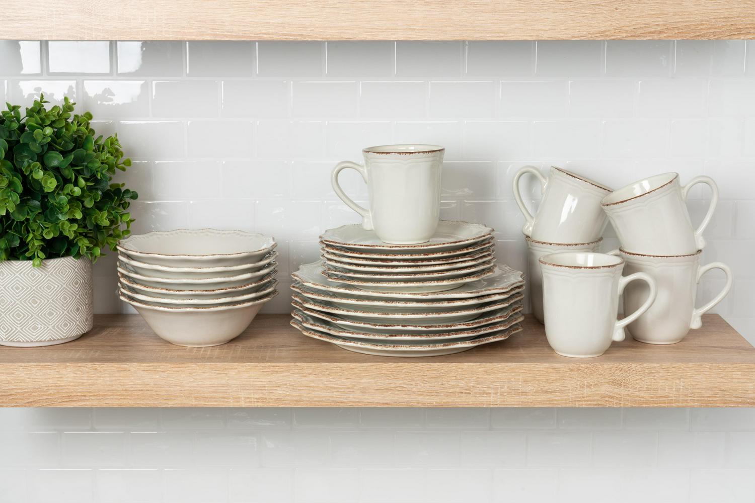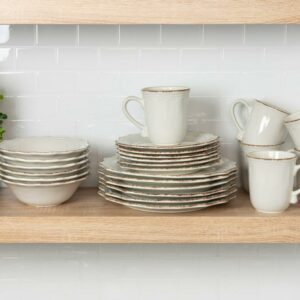 10 Strawberry Street Oxford 24 Piece Stoneware Dinnerware Set, Cream