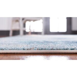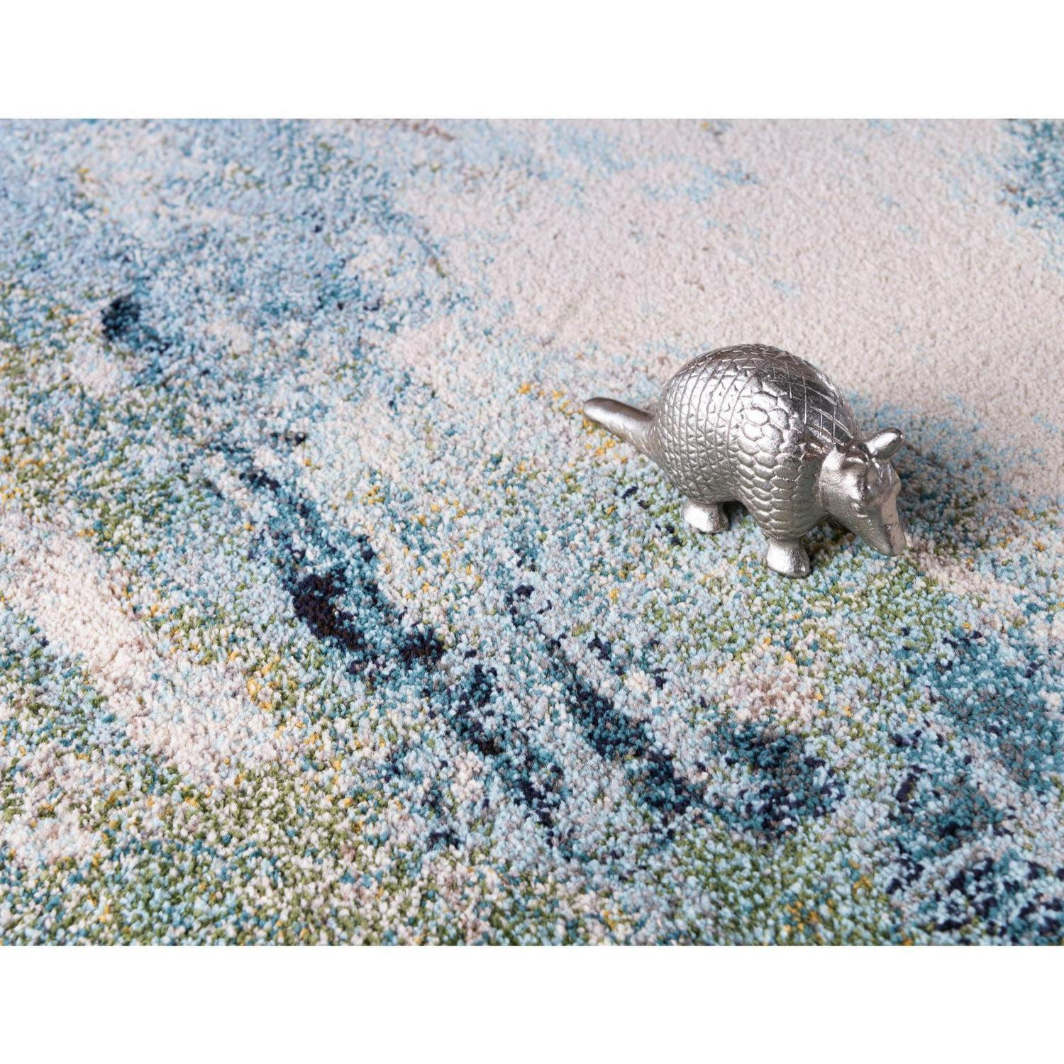 From the Chromatic Collection, this rendition of an impressionist painting in thread exudes a high level of refinement! The abstract themes and patterns are reminiscent of how light moves through our lives, leaving its mark in vibrant hues. This radiant power-loomed rug is soft to touch and comes in a rectangular design. Bring home this playful creation of light and color, add some character to your decor. Product Features: Color(s): light blue, beige, blue, green, gray, ivory and navy blue. Machine made. Abstract pattern. Medium pile. Backing: yes. Easy to clean, stain resistant and does not shed. Recommended for indoor use only. Use rug pad to reduce slipping and sliding. Rug pad sold separately. Made in Turkey. Care instructions: Spot clean only. Regular vacuuming. Use a carpet cleaner but it should be dried immediately and evenly. In case of creases – roll the rug in the opposite direction, while applying pressure to the rug – take the edge, flip it where there is a crease, and slowly pull the rug back, while applying downward pressure on the crease. Dimensions: 10′ wide x 14′ long. Pile height: 0.5″. Material(s): polypropylene. Backing: cotton