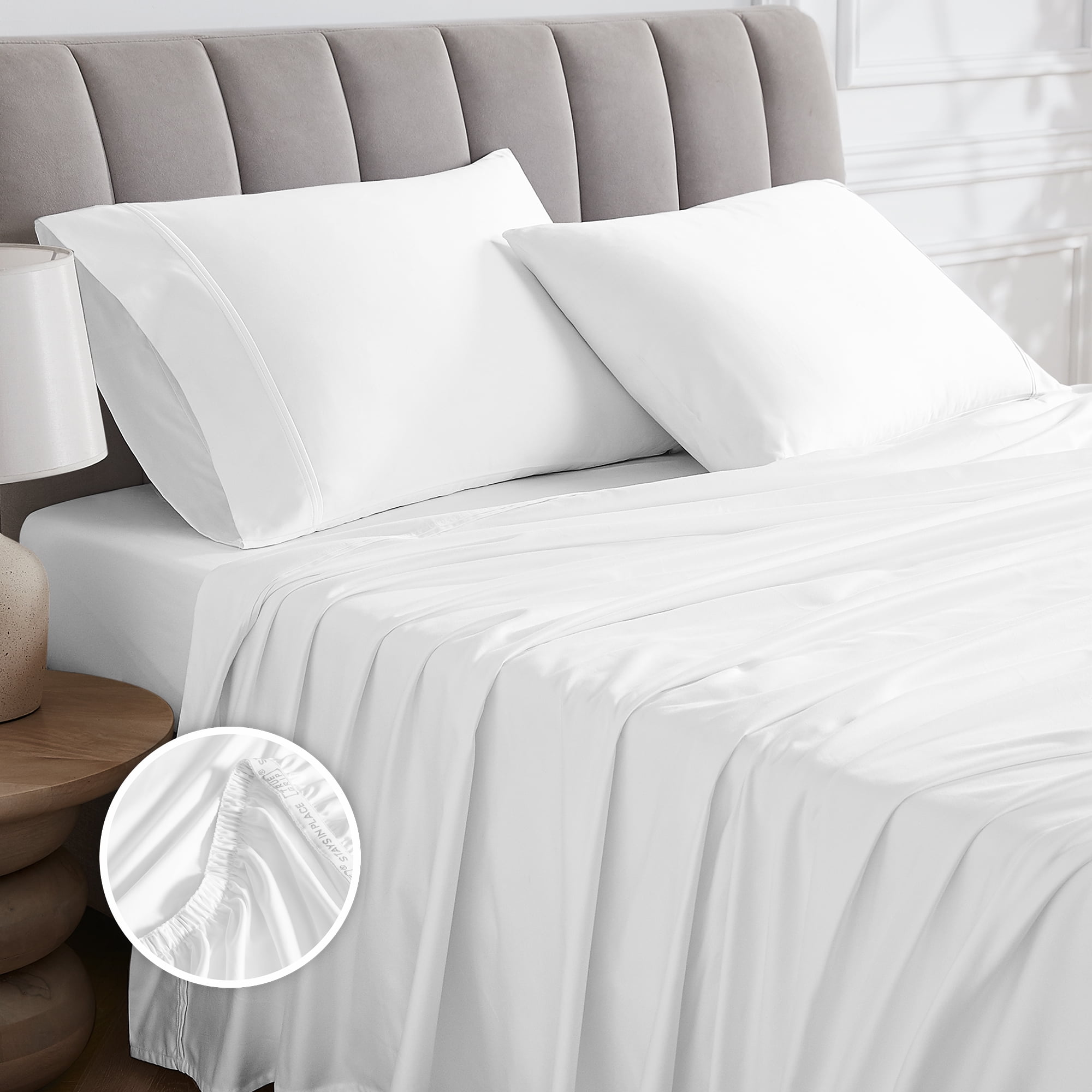 Unveil the epitome of romance and luxury with Aireolux 1000-thread count ultra-soft and silky Egyptian cotton sateen sheets and pillowcases. Woven with unconditional love, our Egyptian cotton sheets and pillowcases promises an exquisite touch of luxury that lingers on the skin and is perfect for gifting your cherished ones, friends, or extended family! Not only that, our white full fitted sheet features a patented True Grip fit technology, which consists of a 1-inch wide boxer elastic on the edges along with ½-inch elastic on the drop, providing a snug-fit assembly with varying depths of mattresses. Exceptionally soft white sheet with luxurious sheen is available in Full, Queen, and King sizes.
