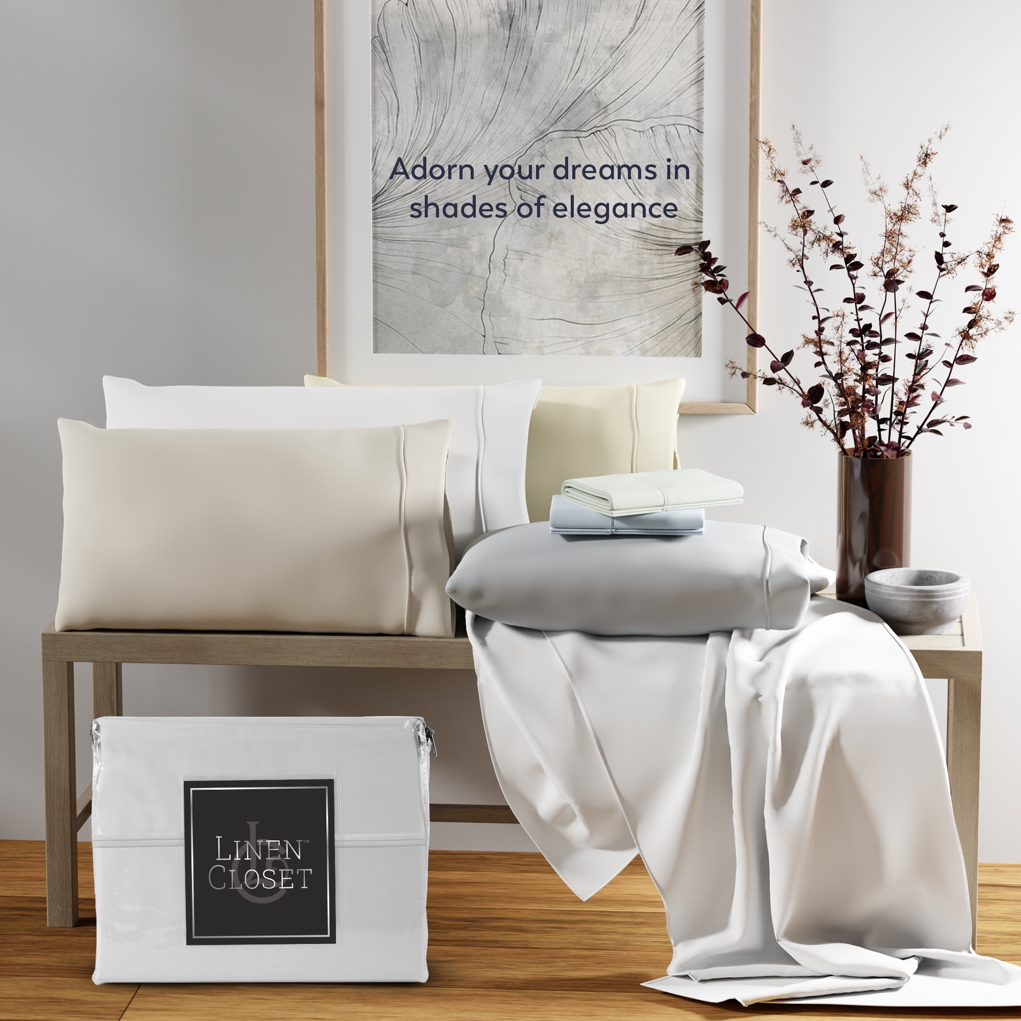 Aireolux 100% Cotton Egyptian 1000 Thread Count Full Bed Sheet Set – 4-Piece Silky Sateen, Deep Pocket, Super Soft & Breathable, White by Linen Closet
