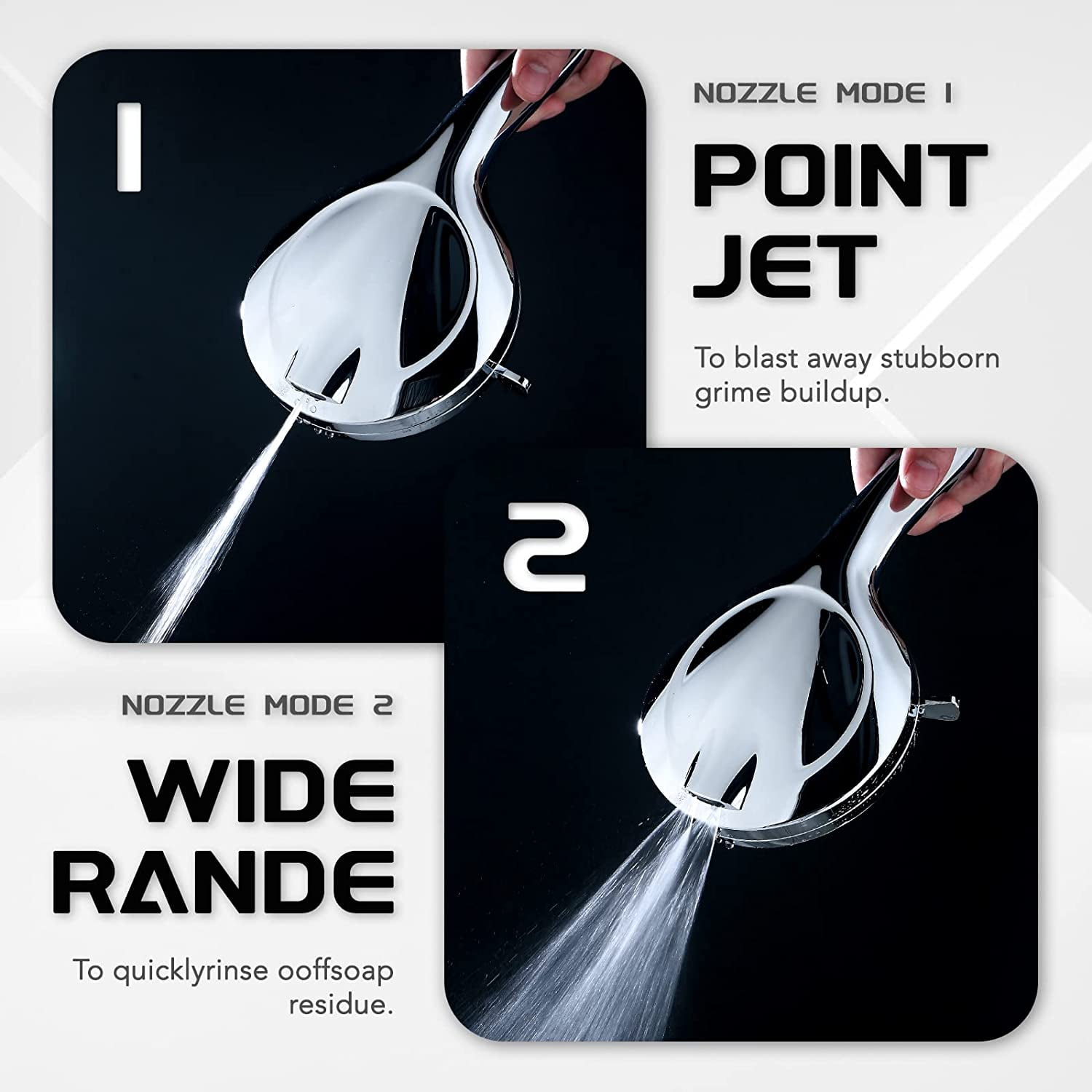 【11” Adjustable Extension Arm】11” Height & Angle adjustable shower arm fits any shower head or hand shower. Solid heavy-gauge brass with strong bearing capacity to support heavy high pressure rain shower head chrome,180 Degrees Height & Angle Adjustable, Allows you to adjust the shower head for best angle and height. 【Self Cleaning Nozzles】10” Large Square Rainfall Showerhead, 100 closely grouped self-clean silicone nozzles provide even spray and prevent lime and hard water build up,resistant to clogging, easy to clean, anti-oxidation and corrosion resistant.Works great even under low water pressure, The combination of ultra-thin and air-in technology leads to high pressure, It will save water for you. 【Installation & Accessories】All accessories are completed, Working with all standard 1/2” pipe threads. tool-free, according to the instructions or installation video in the product images to complete the installation in a few minutes.Additionally equip with 2 stainless steel hooks, 2 pipe sealant tapes and a Bath Sponge. Before you install, please read our instructions carefully. If you have any questions, please feel free to contact us 【Self Cleaning Nozzles】10” Large Square Rainfall Showerhead, 100 closely grouped self-clean silicone nozzles provide even spray and prevent lime and hard water build up,resistant to clogging, easy to clean, anti-oxidation and corrosion resistant.Works great even under low water pressure, The combination of ultra-thin and air-in technology leads to high pressure, It will save water for you. 【Installation & Accessories】All accessories are completed, Working with all standard 1/2” pipe threads. tool-free, according to the instructions or installation video in the product images to complete the installation in a few minutes.Additionally equip with 2 stainless steel hooks, 2 pipe sealant tapes and a Bath Sponge. Before you install, please read our instructions carefully. If you have any questions, please feel free to contact us Color: Silver What’s in the box 10” Rainfall Shower Head x 1 Power Wash Handheld Shower Head x 1 Shower Head Holder x 1 59” stainless steel Hose x 1 3-way Water Diverter x 1 12″ adjustable extension arm x1 water flow regulator x1 Teflon Tape x 2 Rubber Ring x 6 installation manual x 1 Hooksx2 bathballx1