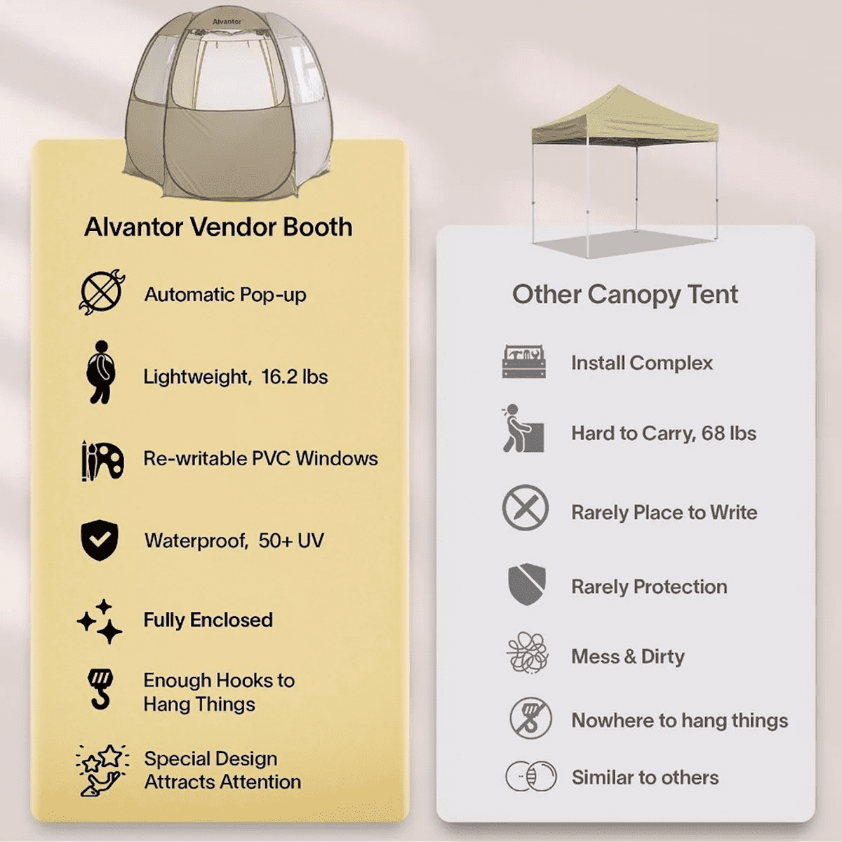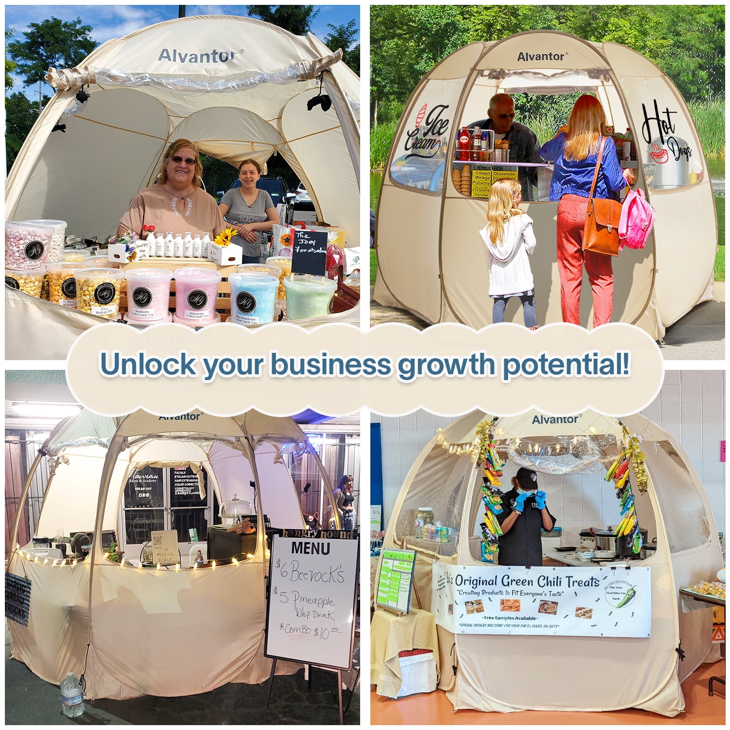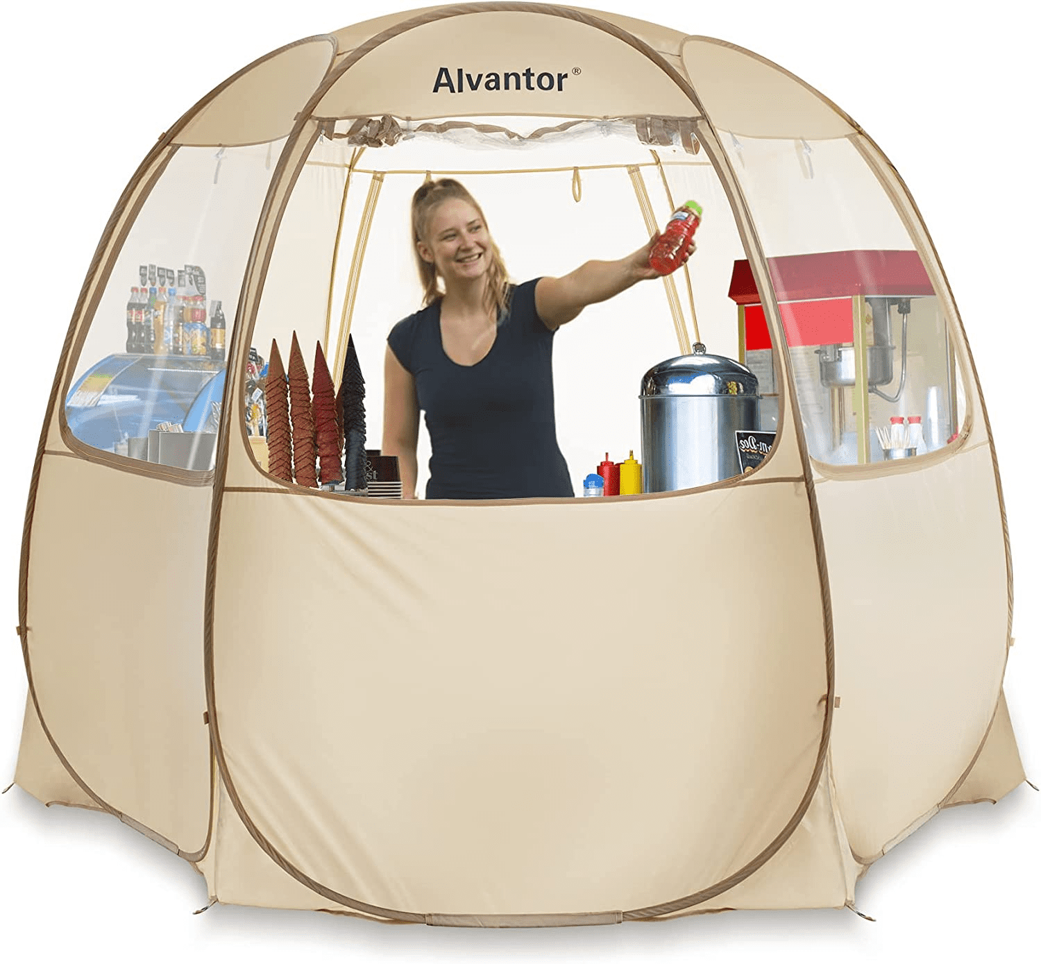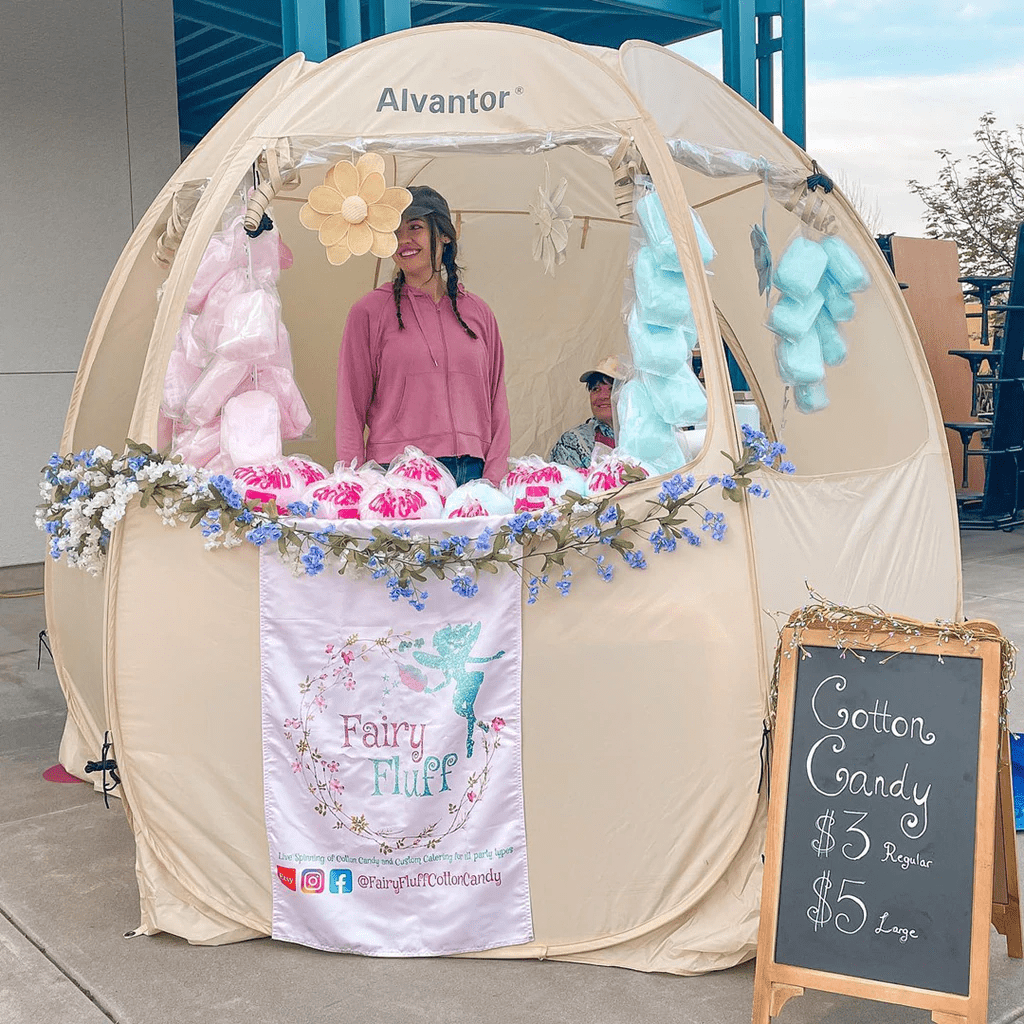Alvantor Vendor Booth Tent Pop Up Gazebo Party Event Canopy Sun Shelter Camping Portable Tent 10X10 ft. This Vendor tent is made with oxford fabric. Our Camping Canopy provide UV+ protection. This Retail Kiosk tent can be used as a portable vendor booth at zoo, park, garden and other places. You can sell popcorn, ice-cream, hot dog, coffee et.al. It is the best choice for your business!