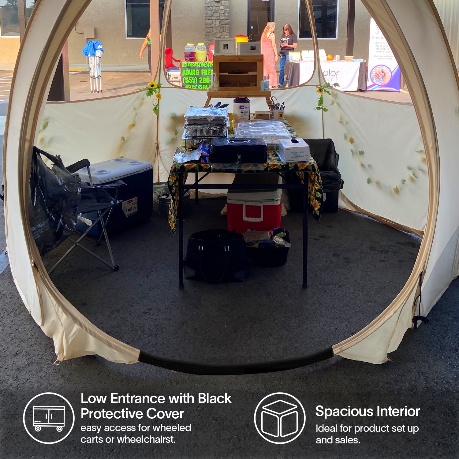 - DRY ERASE WINDOWS — Write on the PVC windows with wet/dry erase markers to attract customers, advertise your products, and promote sales inside your mobile store. Roll the windows up or down in your canopy tent with sidewalls for full control over the internal temperatures depending on body heat or equipment usage.