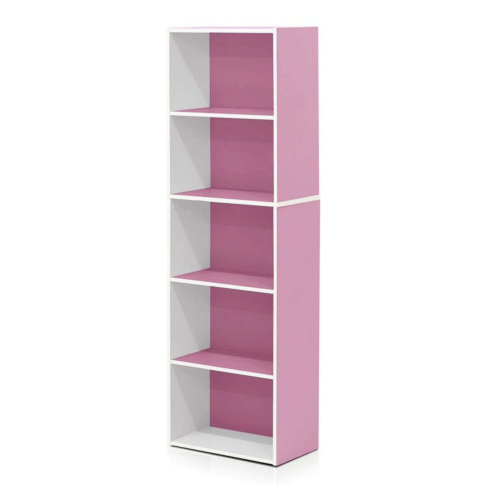 11055 5 – Tier Reversible Color Open Shelf Bookcase, White / Pink