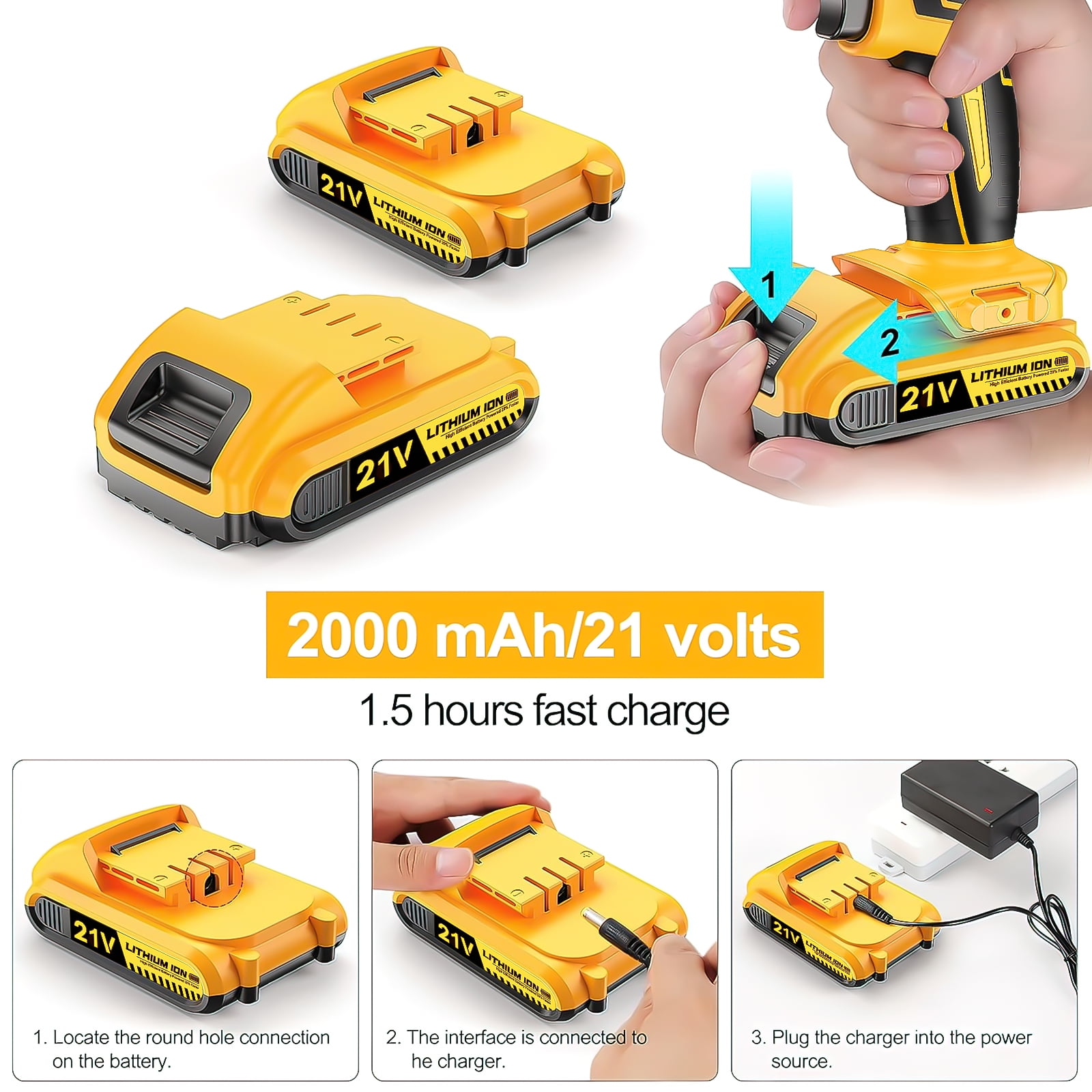 UNTIMATY 21V Cordless Power Drill Set with Battery and Charger, Electric Drill Driver Kit with Drill/Driver Bits and Work Light, 3/8″ Keyless Chuck, 2-Speed 25+3 Position, Yellow