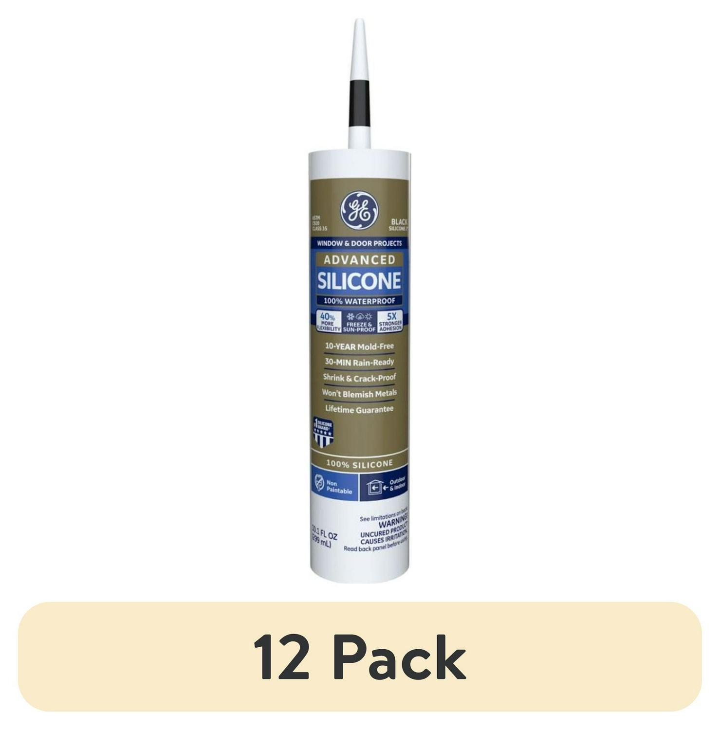 (12 pack) GE Advanced Silicone Window and Door Sealant, Pack of 1, Black 10.1 fl oz Cartridge