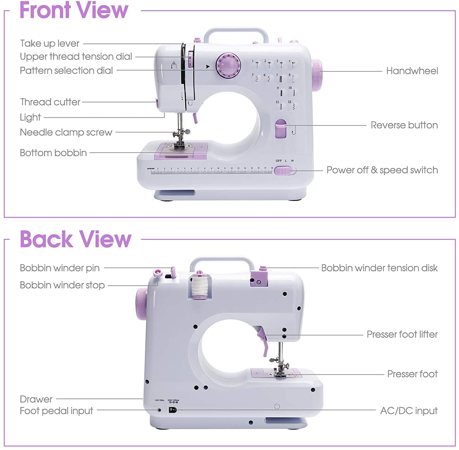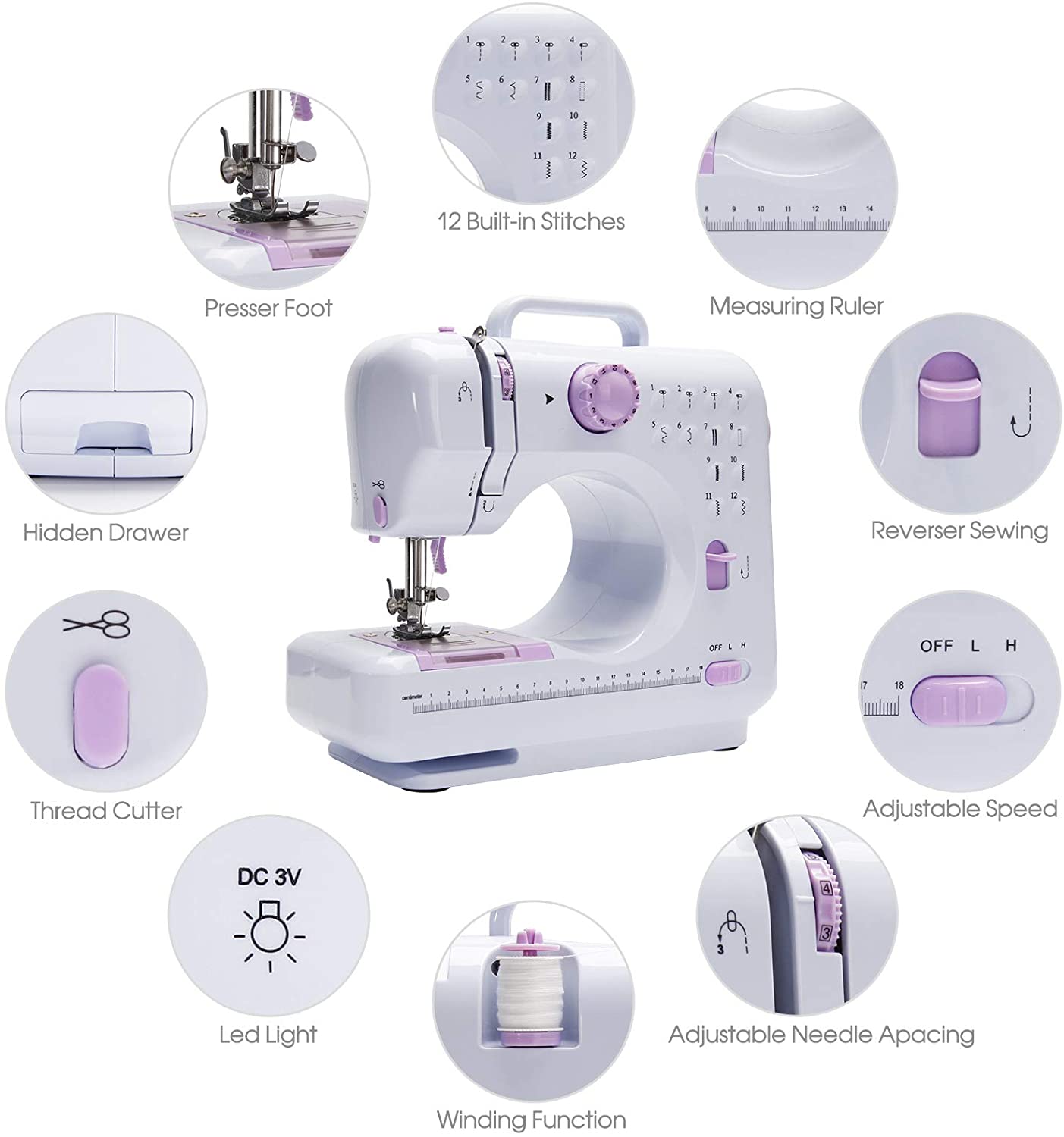 YouYeap 12 built-in stitch patterns High/low speed selector New Portable Sewing Machine