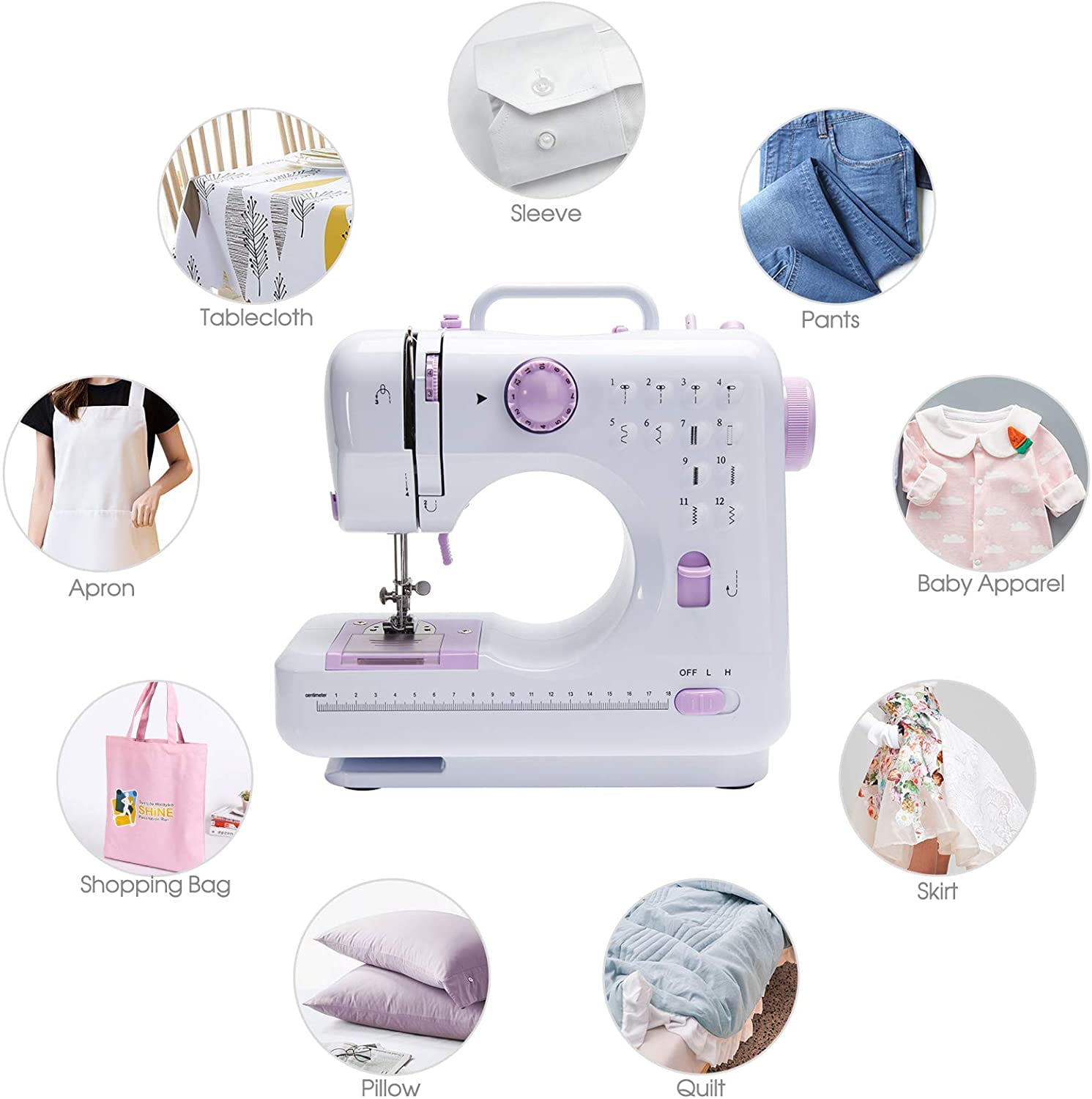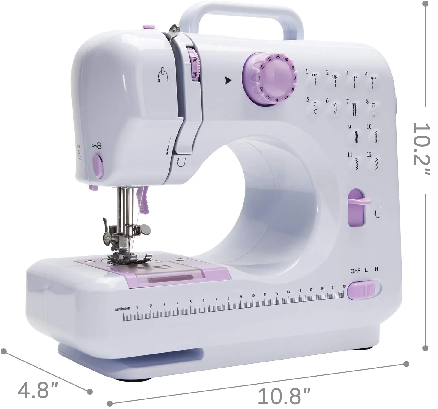 12 Stitches Sewing Machine, Multifunctional Mini Portable Sewing Machine Basic Easy to Use for Adults and Kids, Two-Thread Lockstitch with High & Low Adjustable Speeds