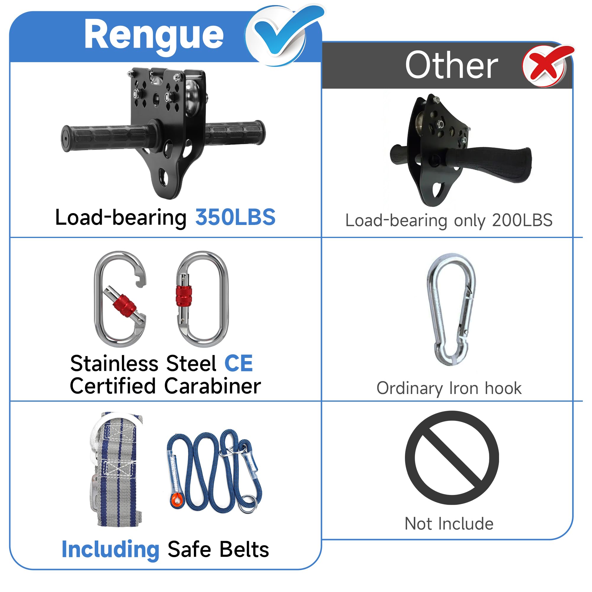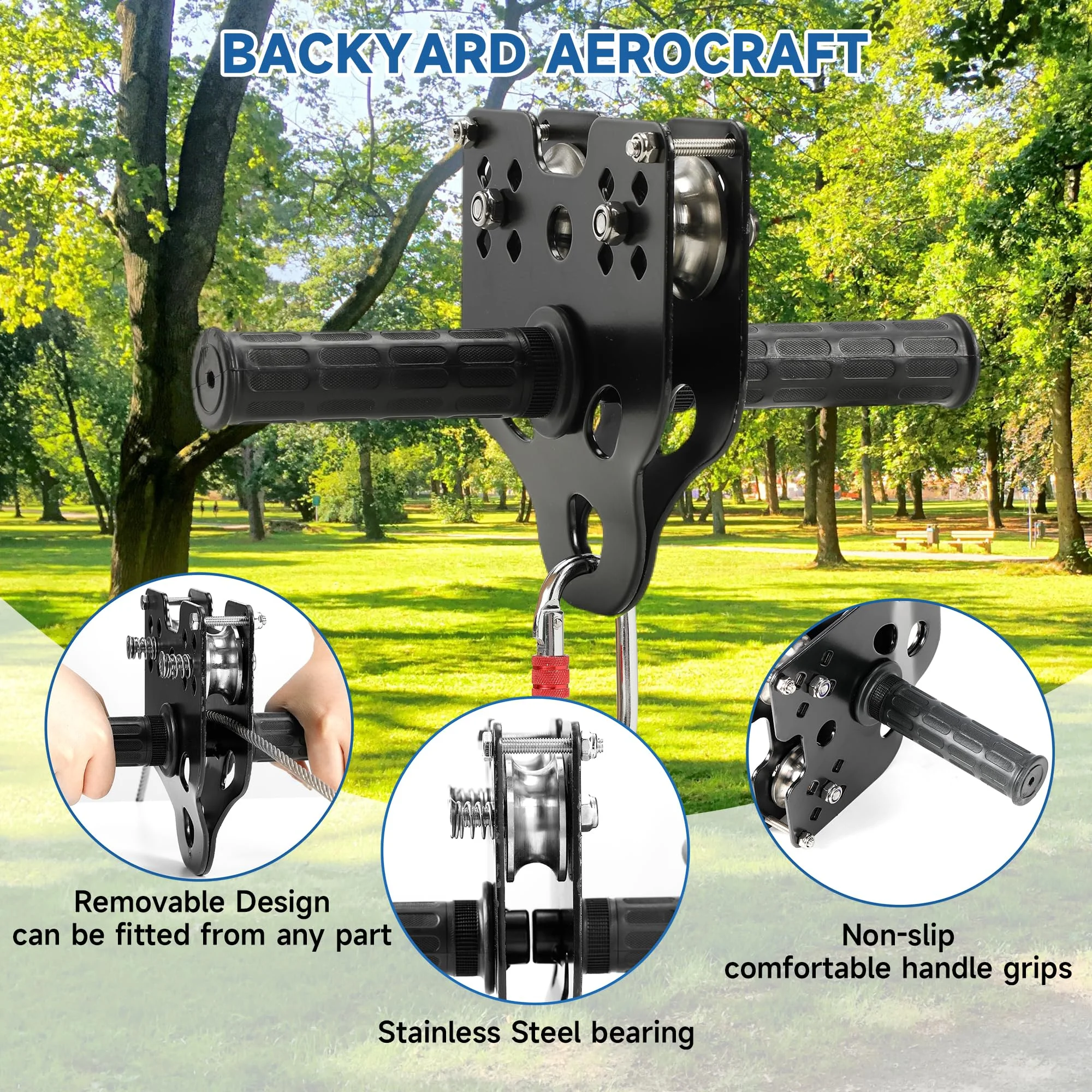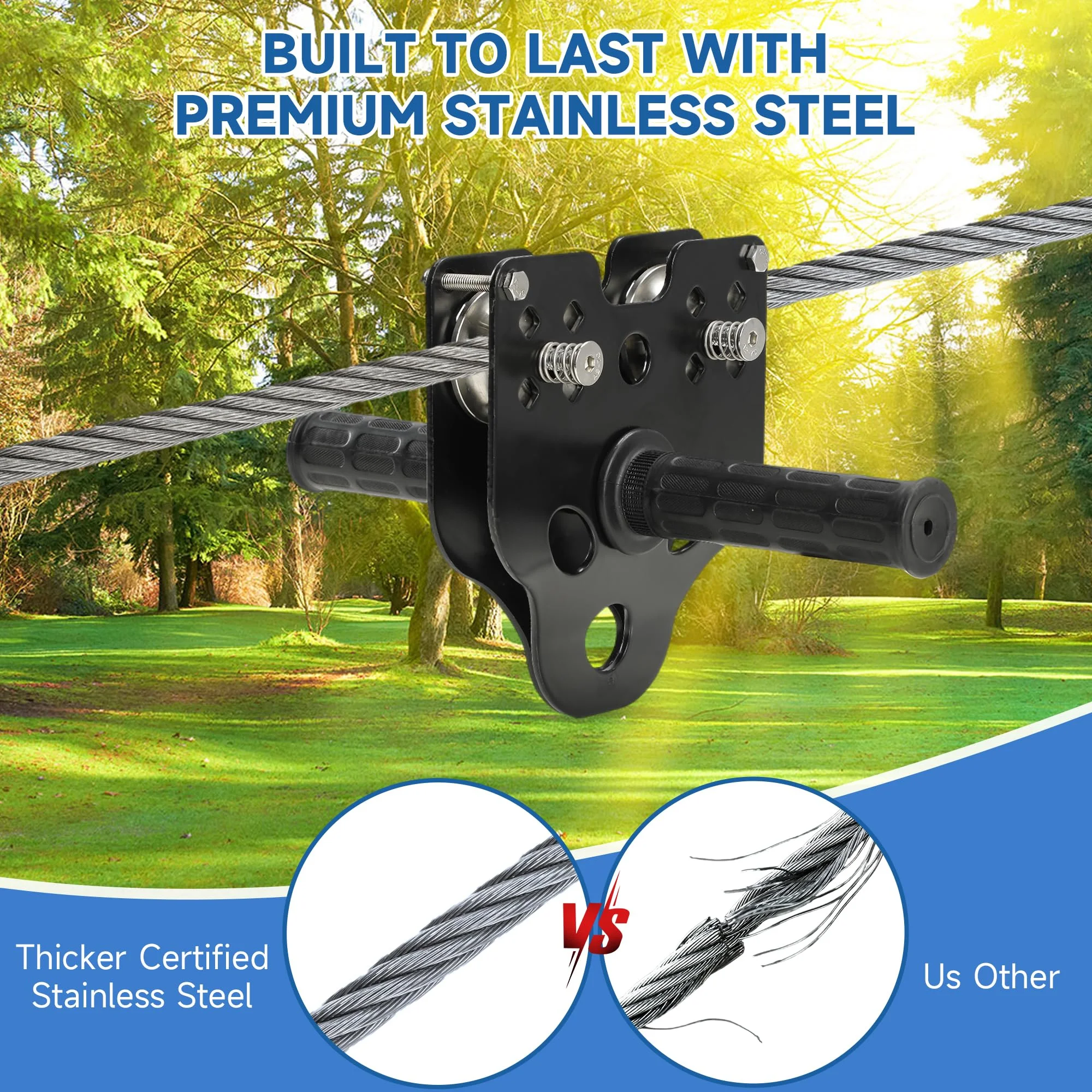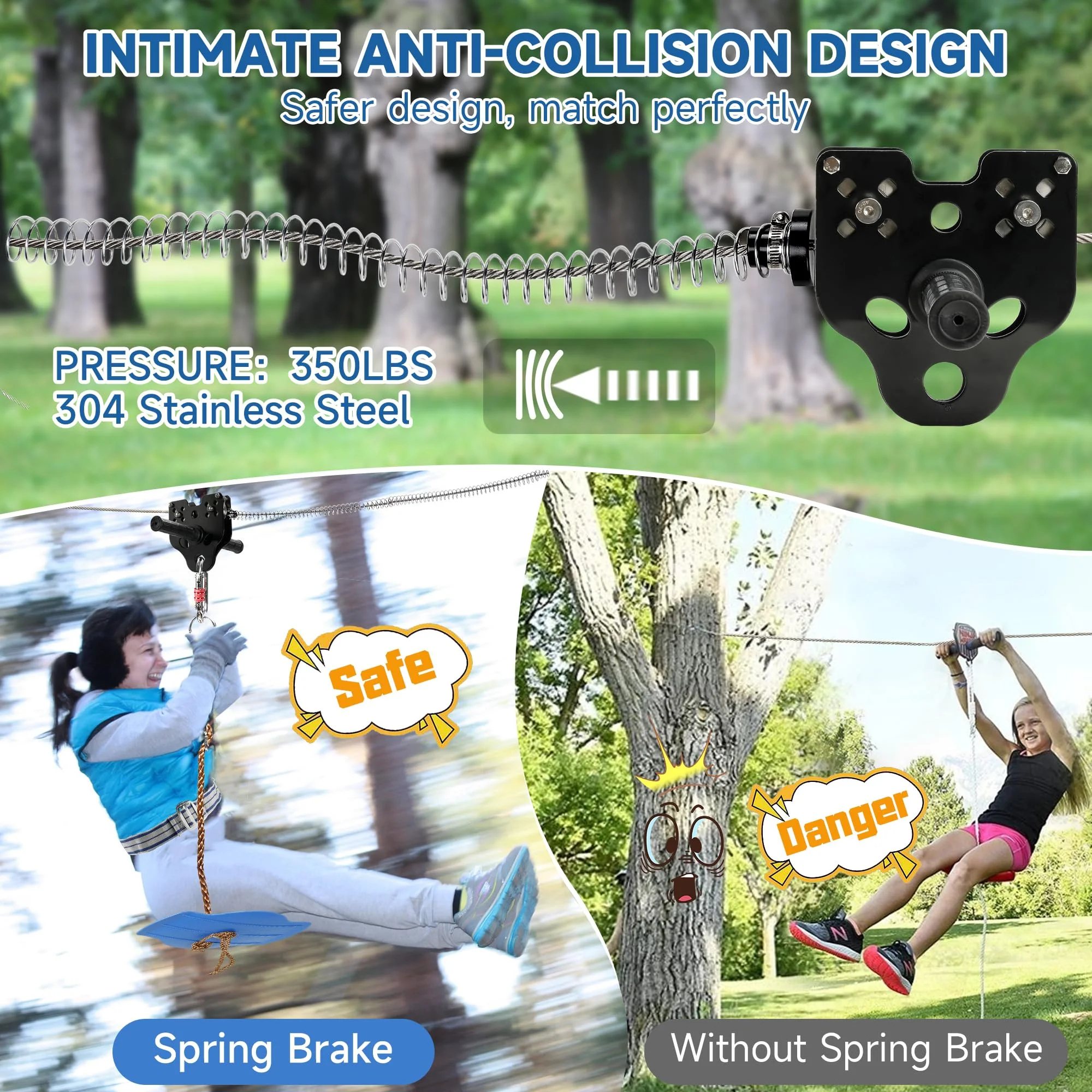 【Safety First】Seat Belt + Adjustable Strap + Reliable Brake System, Ensure Maximum Safety! Constructed from 1/5″ diameter extra-high-strength stainless steel, our steel cables are weather-resistant and include a safety harness for extra safety. By adjusting the buckle, the length can be adjusted according to your needs, suitable for children of different ages and sizes. The spring is made of stainless spring steel, which is not easy to rust. The spring brake can effectively ensure a safe distance between your child and the tree, ensuring safety! 【Professional SUS304 Stainless Steel】The backyard zip line is designed with your child’s safety as the first consideration. Zipline pulleys are made of double stainless steel with ultra-slip, sealed ball bearings for long-lasting wear. Simply open from the bottom, attach securely to the guyline, and install from anywhere on the cable. It can easily support 350 lbs! The service life is up to several years! 【Upgraded Humanized Design】Durable adjustable seat + strength load-bearing, the upgraded seat is more ergonomically designed, allowing children and adults to sit more comfortably! Our kids zip line is designed with kids in mind – the non-slip rubber grips help riders keep a firm grip on the zipline while they play! Meanwhile, the sling is equipped with a tree protection pad to avoid any damage to the tree. 【Perfect Holiday Gift】Perfect zip line kit for backyard family fun, parties, summer camping, party challenges, camping gear accessories, playground equipment, parks, outdoor games, and more. A great outdoor activity/birthday/Christmas gift will bring joy to your child and spend the perfect parent-child time! 【Satisfaction Service】Our zipline kit with a 180-day limited warranty, If you are not satisfied with the kid’s heavy-duty zip line kit, you can get a full refund anytime within 30 days! If you encounter any problems, please contact us first, and we will try our best to help solve them! Please rest assured to buy!