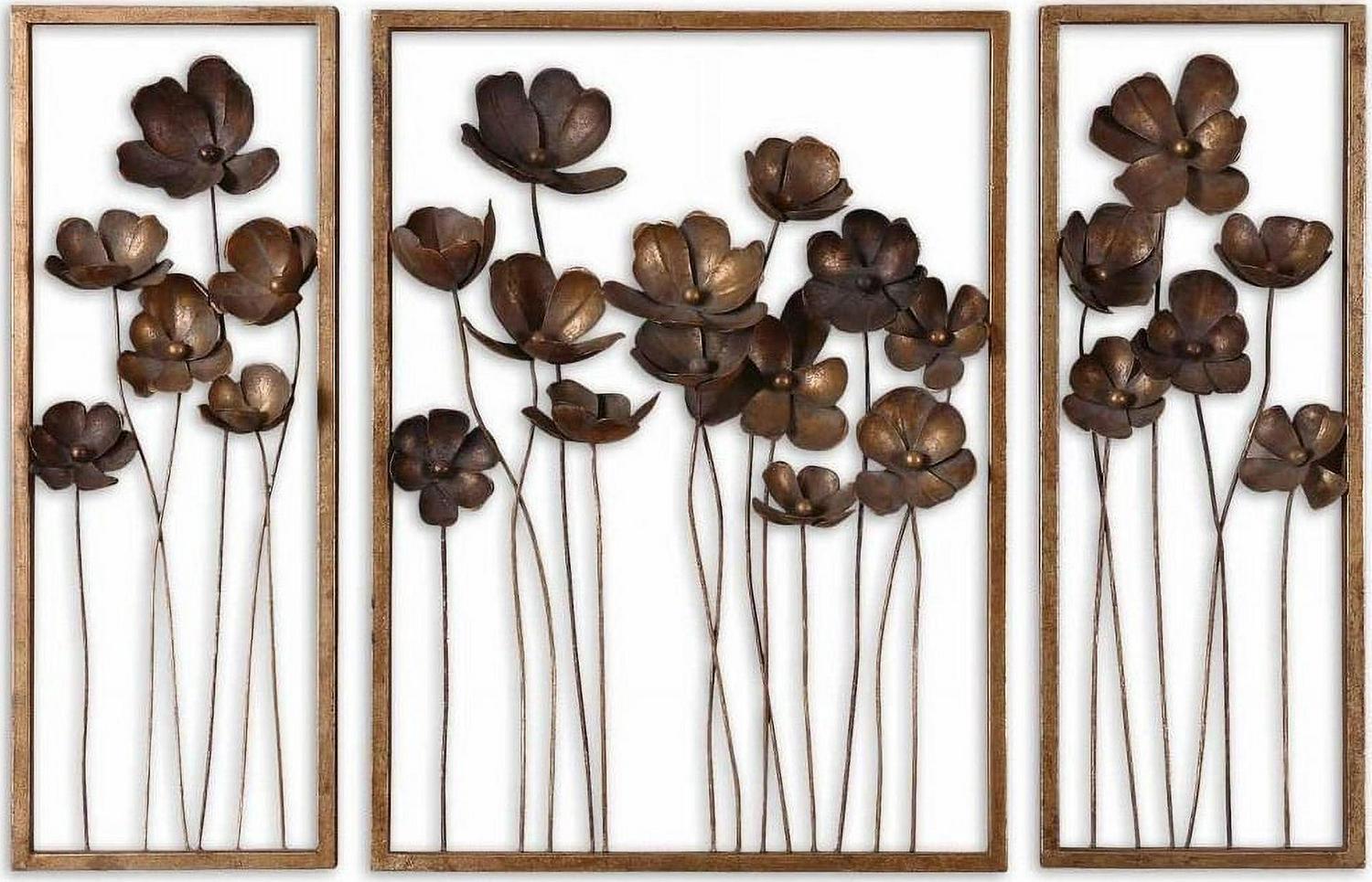 Uttermost-12785-Collection: Metal Tulips, Material: Iron, Finish Color: Antiqued Gold Leaf/Charcoal Gray Wash, Width: 40″, Height: 27″, Desc: This Set Of Decorative Wall Art Is Made Of Hand Forged Metal Finished In Antiqued Gold Leaf With A Charcoal Gray Wash. Sizes: Sm-10x27x4, Lg-20x27x4.