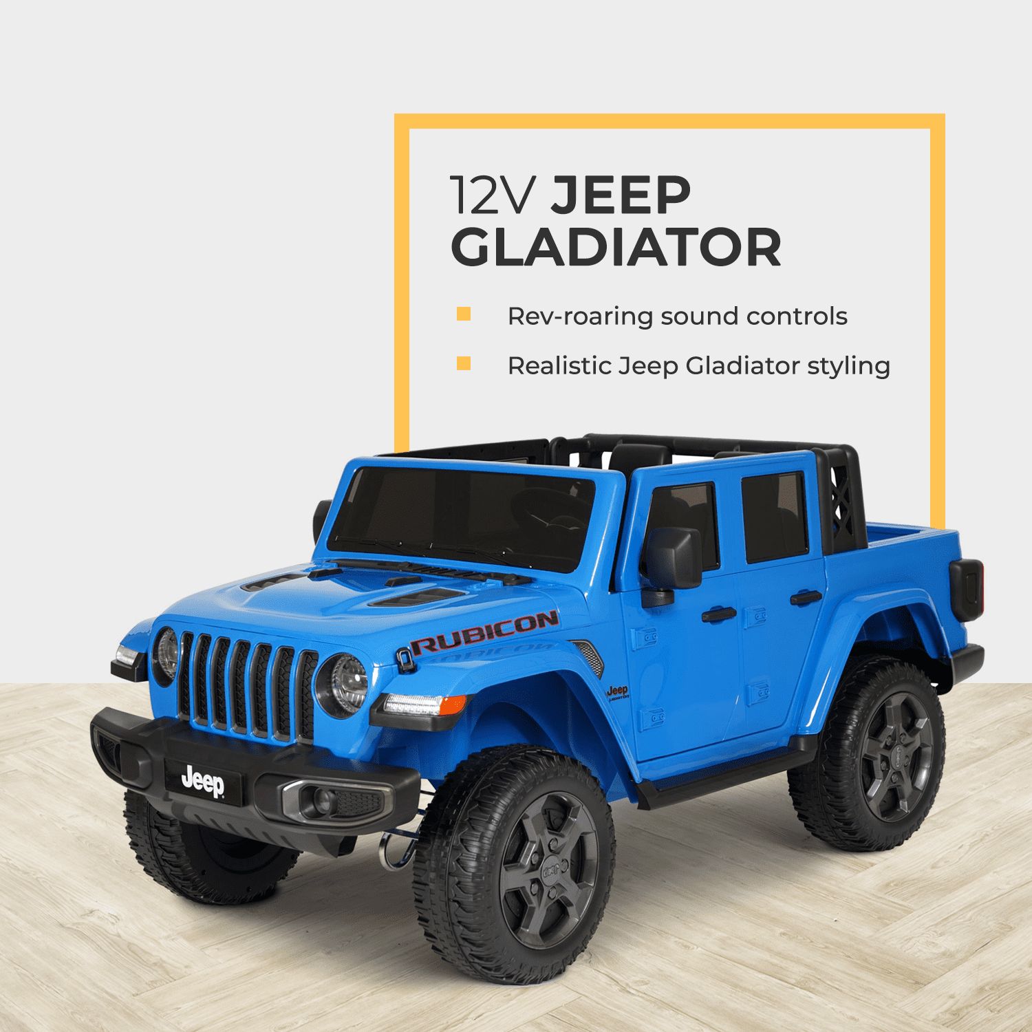 12V Jeep Gladiator Rubicon Battery Powered Ride-on by Hyper Toys, 2-Seater, Blue, for a Child Ages 3-8, Max Speed 5 mph