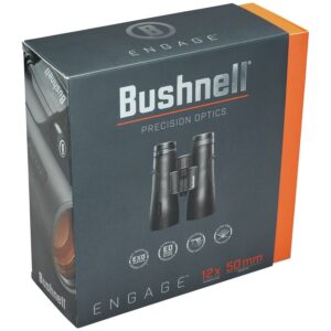 029757000699 BUS BEN1250The Bushnell « EngageÔäó ÔÇô its best-in-class optic with new industry leading features. The entire line is backed with the all-weather assurance of BushnellÔÇÖs exclusive EXO Barrier lens coating ÔÇô it repels water debris oil and fog.The fully multi-coated optics offer maximum brightness and clarity and theyÔÇÖre housed in a lightweight and rugged magnesium chassis. ED Prime Glass and a locking eyepiece diopter ensure razor sharp images every time.Magnification x Obj Lens: 12x 50mmClose Focus: ft/m: 10/3.0PC-3 Phase Coating: YesLens Coating: Fully Multi-CoatedField of View: ft@1000yds/m@1000m: 280 / 93Adapt to Tripod: YesEyecups: Twist-UpLocking Diopter: YesEye Relief: mm: 15Focus System: CenterExit Pupil: mm: 4.1Prism Glass: BaK-4Water/Fog Proof: YesPrism System: RoofLength: in: 6.5Weight: oz/gr: 29.2 / 830Size Class: Standard