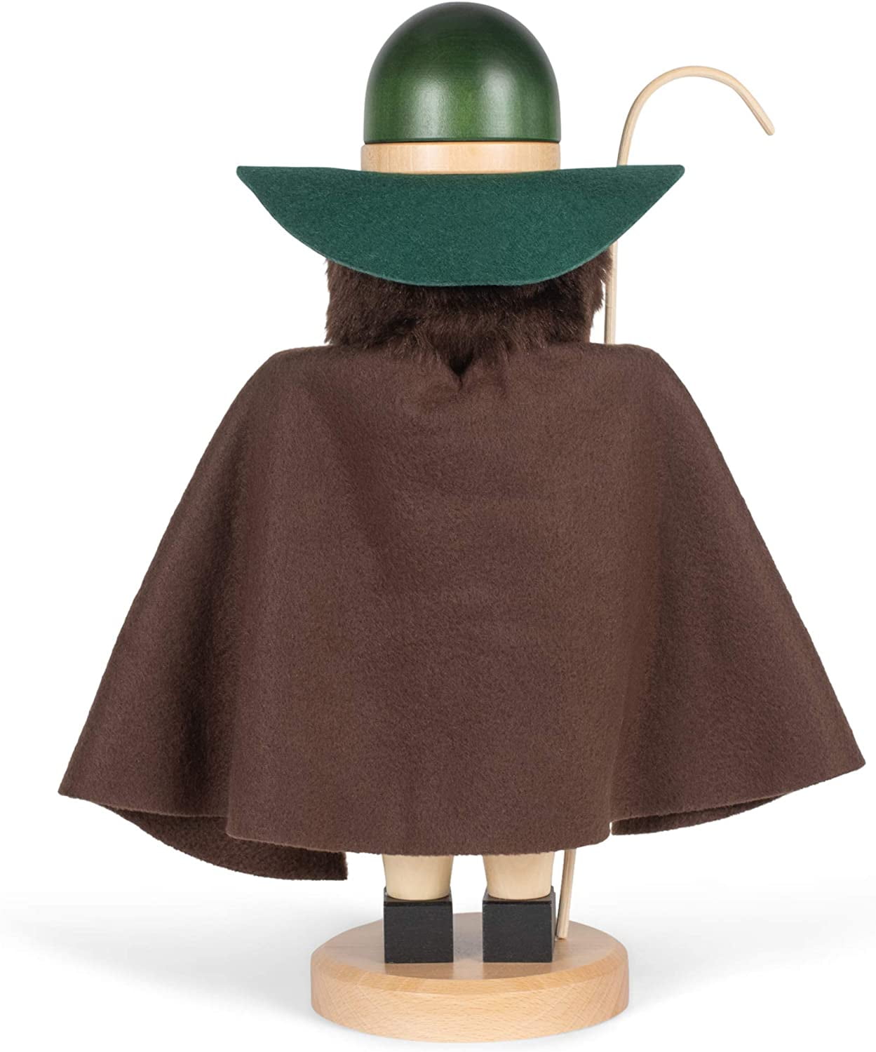 Green and brown nutcracker decoration Hand crafted and painted Made in Germany Unique stylish holiday decoration Measures 16 inches high by 6.75 inches wide by 8.75 inches deep