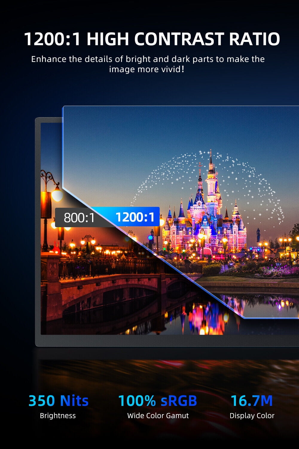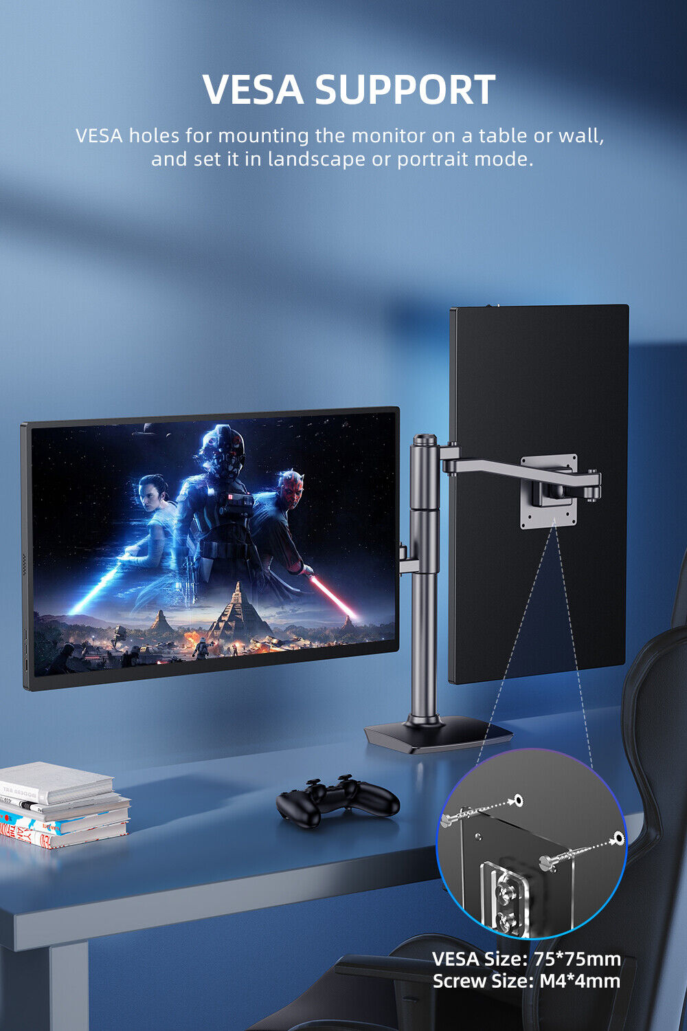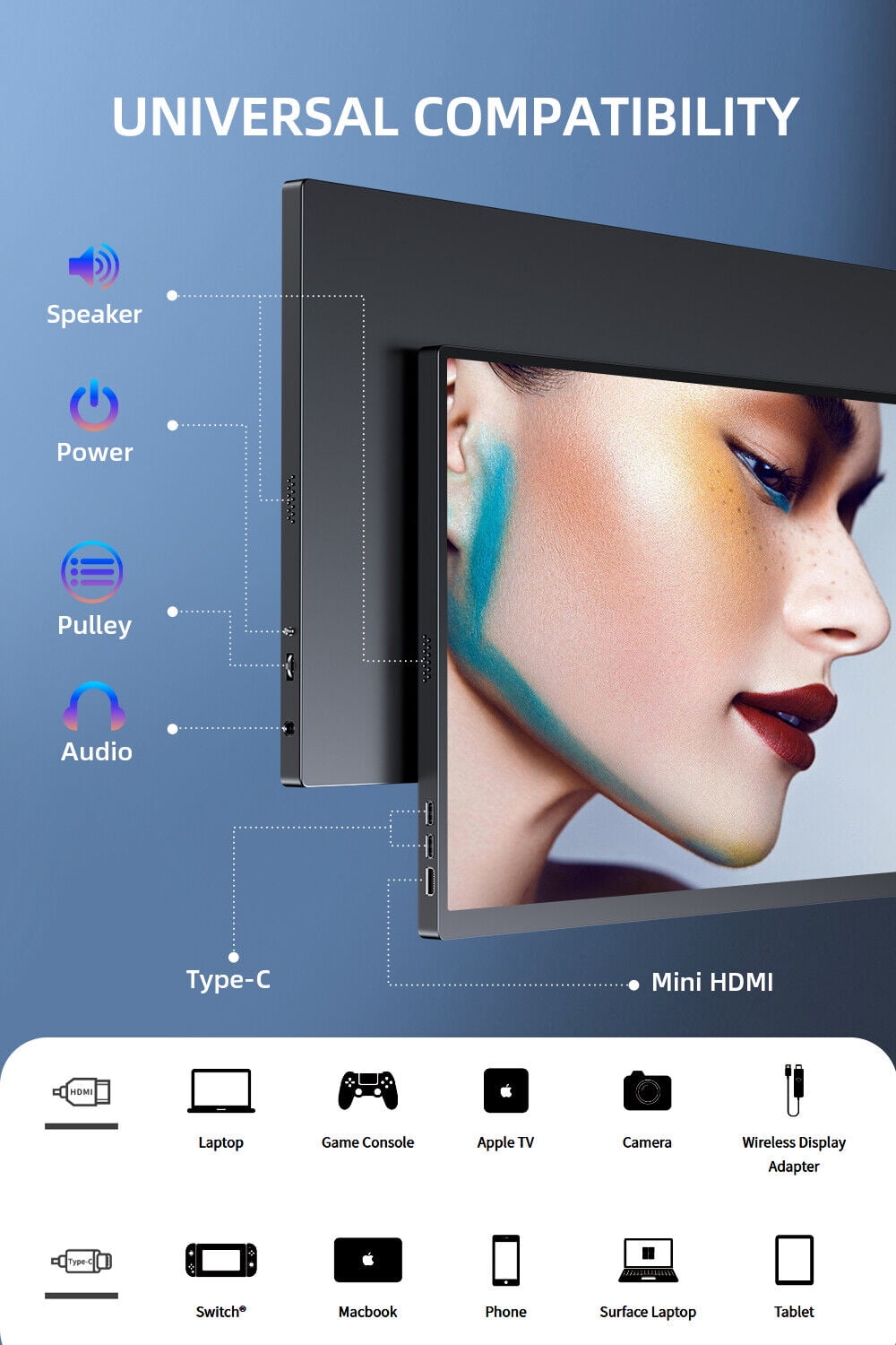 【Larger Screen & Better Image Quality】EVICIV 18.5-inch screen provides more viewing space and 178° wide viewing angle. Excellent display parameters, presenting vivid colors and realistic picture effects, which can not only improve your office efficiency but also give you an immersive gaming experience. Eye Care Anti-glare Matte IPS Screen, Low Blue Light Mode, 1920*1080 FHD, 100% sRGB Color Gamut, 8-bit Color Depth, 16.7 Million Colors, 350 Nits Brightness, 1200:1 Ultra-high Contrast Ratio. 【Leather Case & Vesa Mount】EVICIV has customized a stronger suction smart cover for this 18.5-inch monitor, that doubles as a stand and provides excellent protection for the large external monitor. The standard 75x75mm VESA holes (M4*4mm) give you plenty of options for mounting your portable second monitor on any wall or desk. If you need a portable stand to achieve more fashionable and stable support, please let us know! 【Frameless And Lightweight Travel Monitor】Different from the heavy large-screen PC monitor, the EVICIV 18.5-inch travel monitor balances large-screen and portable, realizing technological innovation. Net weight 2.6lb, all-aluminum alloy frame with 12mm thickness, three-sided 4mm narrow frame design, minimum bezel, and seamless views keep you focused on your work. 【Plug & Play】With full-function Type-C ports and a Mini HDMI port, the portable gaming monitor works with multiple devices like laptops, PCS, phones, gaming consoles, PS4, PS5, XBOX, Nintendo Switch, Raspberry Pi, and more. Equipped with a 3.5mm audio input for an enhanced entertainment experience while watching videos and playing games. 【Better Game Experience】The game OSD provides a variety of player-centered game modes (FPS/RTS). In addition, you can make settings according to your style, such as the black equalizer function, backlight adjustment function when the image is bright, and game picture optimization function. Built-in dual speakers provide booming sound with crystal clear audio quality when watching videos and playing games.