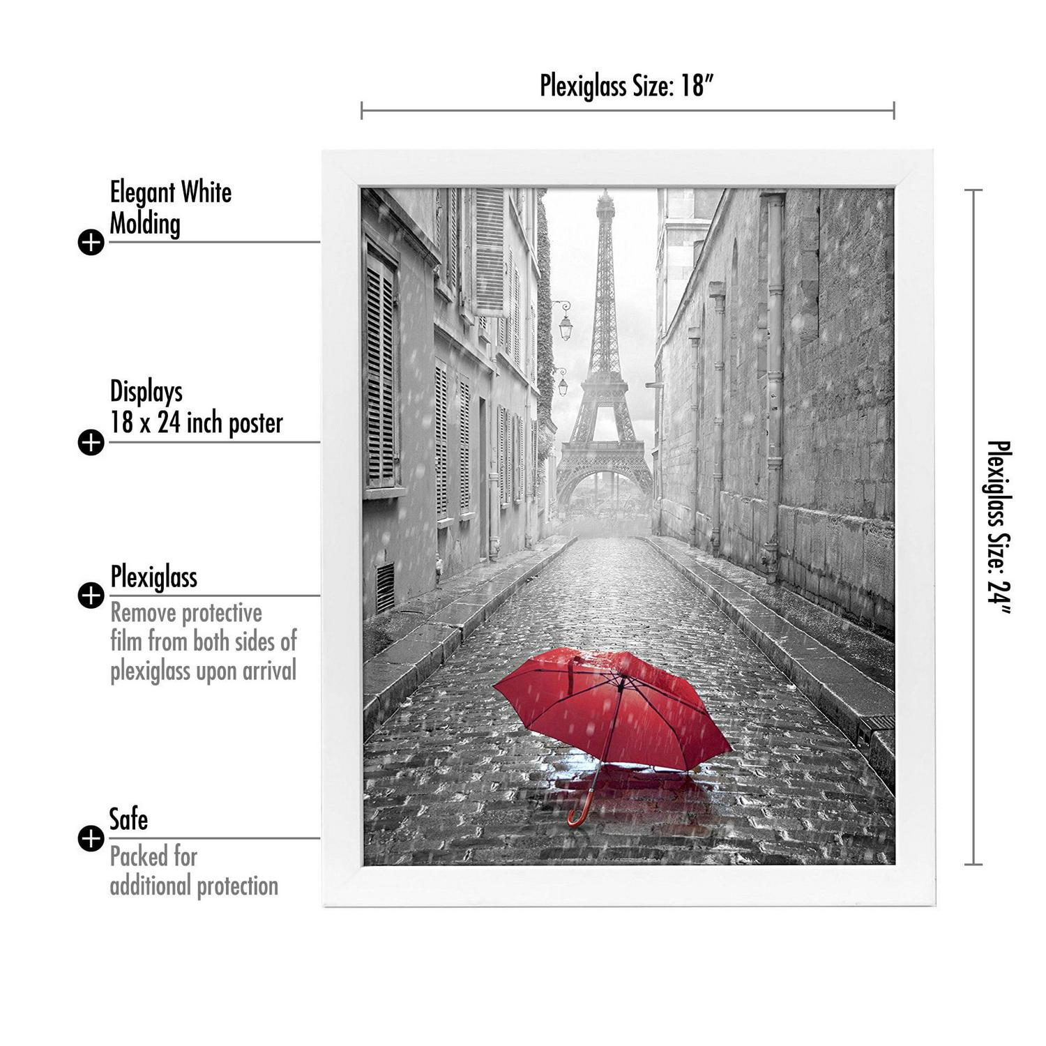 18×24 inch white poster frame with a plexiglass front for displaying posters and art. Beautifully display posters and art with this sleek designer frame.