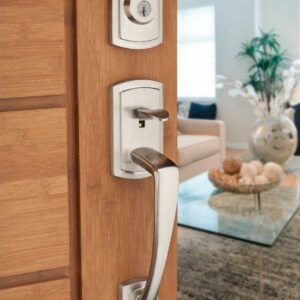Baldwin prestige nautica single cylinder handleset with tobin lever featuring smartkey security