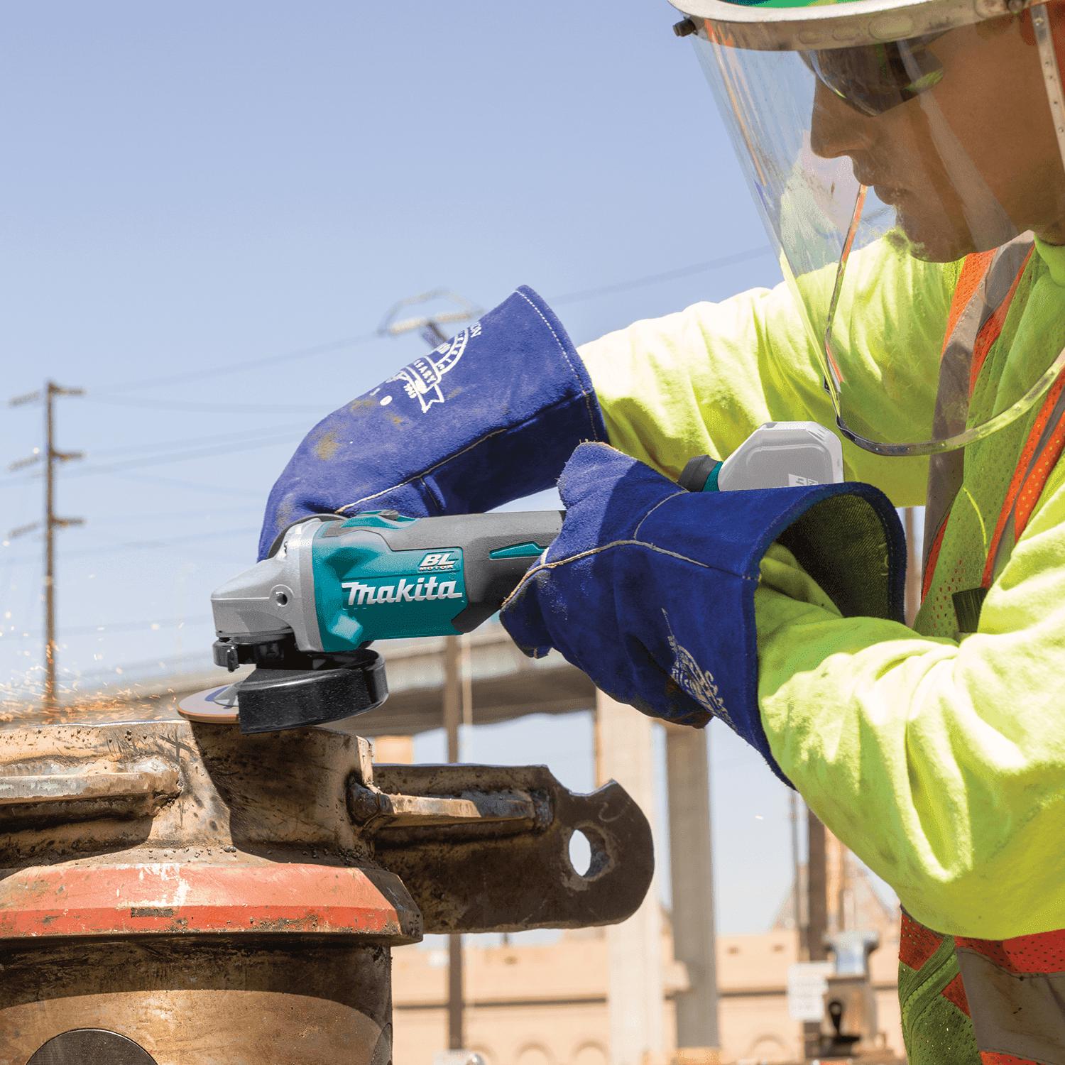 Makita delivers corded grinding performance without the cord with the 18V LXT Lithium-Ion Brushless 4-1/2 Cut-Off/Angle Grinder with Electric Brake (XAG09Z, tool only, batteries and charger sold separately). It’s powered by a Makita brushless motor for longer run time, increased power and speed, and longer tool life. For the most demanding applications, Makita s exclusive Automatic Speed Change Technology automatically adjusts speed and torque during operation for optimal performance. For added convenience, the XAG09Z has an electric brake that stops the wheel in 2 seconds or less upon release of the switch. The XAG10Z is ideal for grinding, cutting and sanding a wide range of materials including tile, concrete, pipe, conduit, and more.