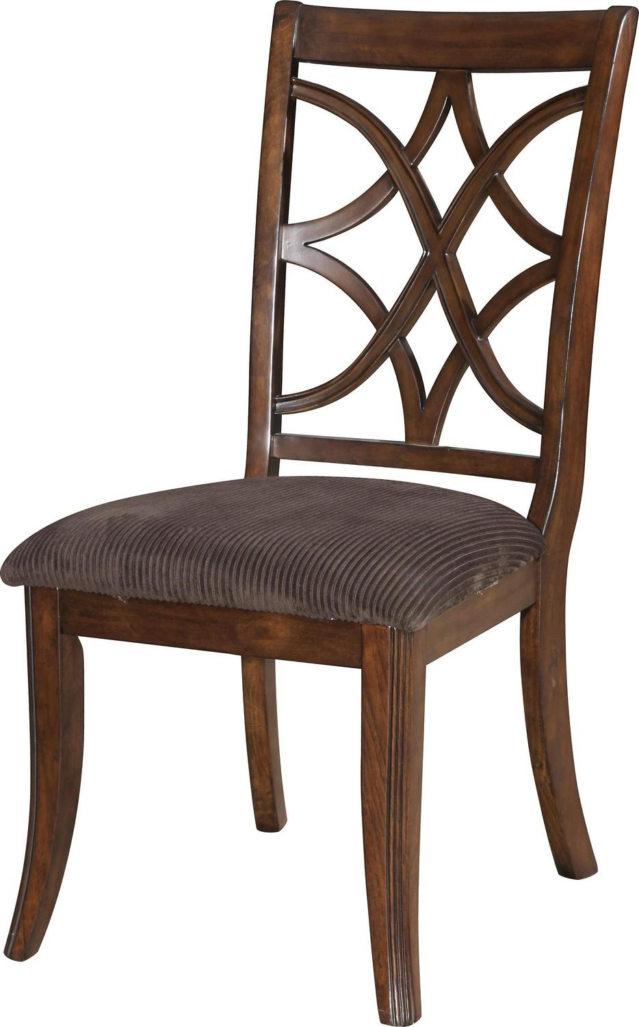 19 Inch Wide Wood Dining Side Chair, Set of 2, Brown- Saltoro Sherpi Let this traditional style chair set add style, comfort, and functionality to your home. The chairs are made of wood and upholstered in fabric displaying a ribbed design. Incorporating a designer cutout open backrest and finished in a warm brown, they will go with any setting imaginable.