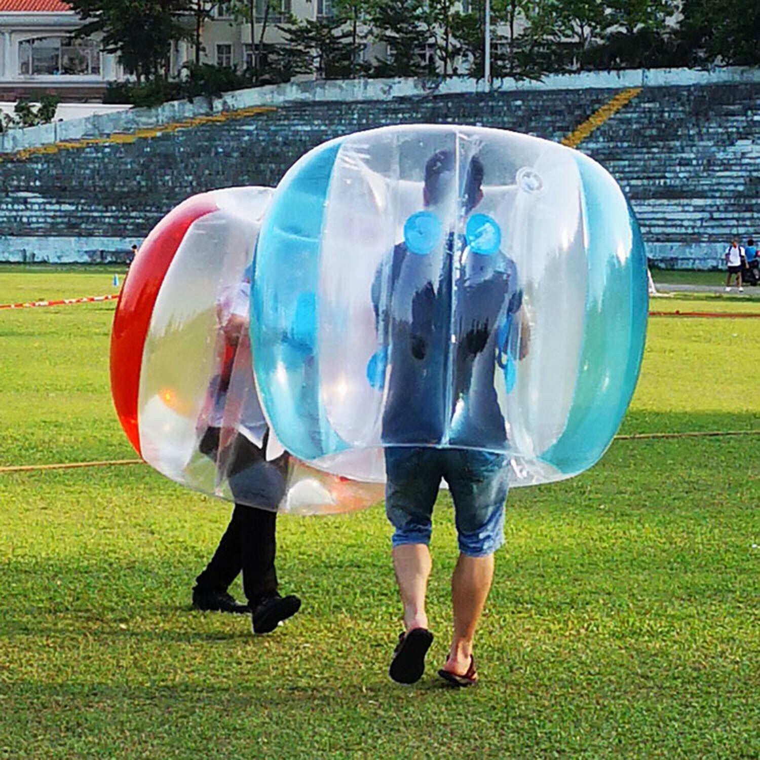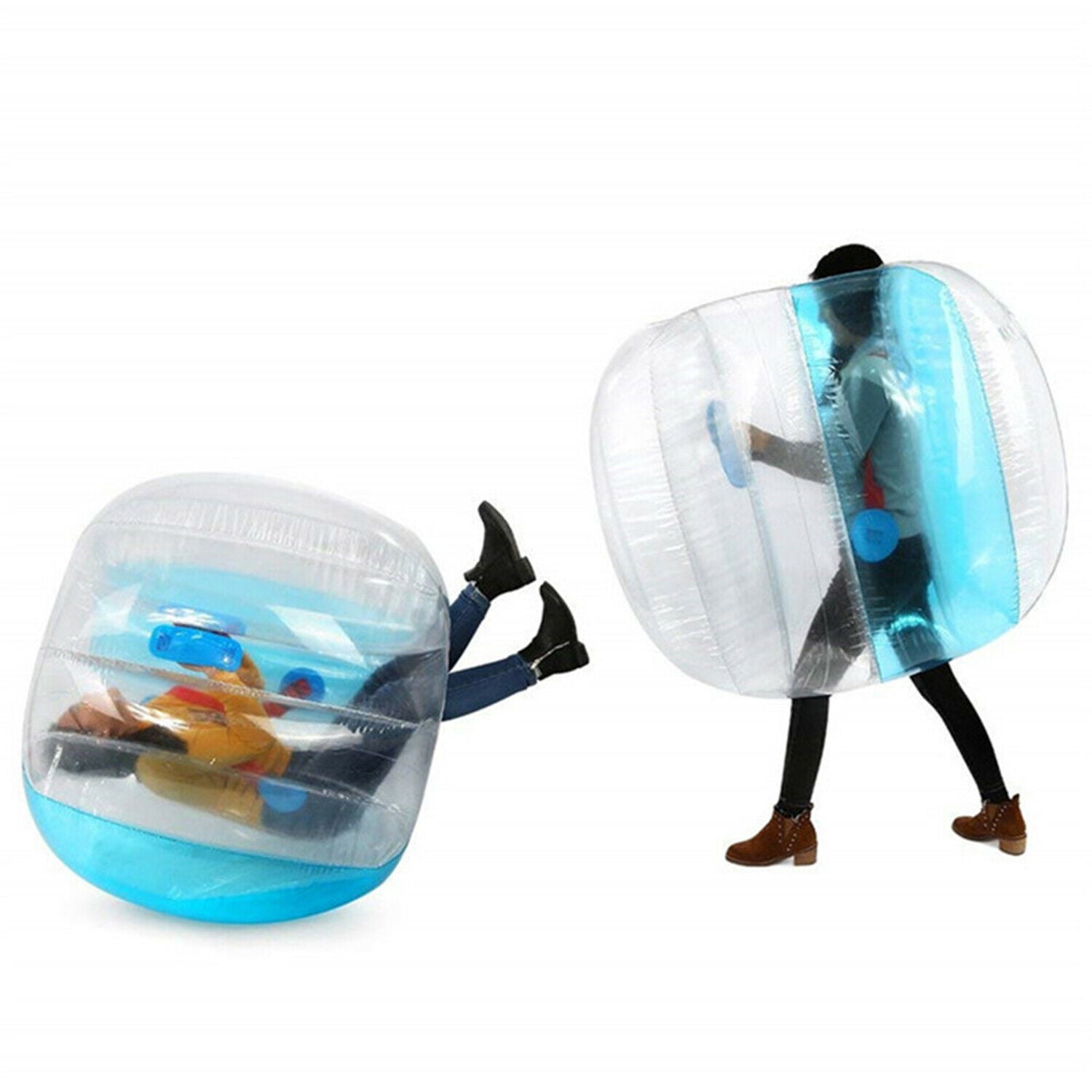 Perfectly Safe Design: The inflatable bumper balls were made with non-toxic 0.3MM PVC for the whole body. They also had a thicker connecting piece, a safe air valve, and secure handles to make sure that kids were completely safe while they played. Portable AND Lightweight: Using the air valve, it only takes a few minutes to blow up or deflate this human hamster ball, and it’s very light to carry around. Outdoor Activity Essential: -A good toy for kids or families to play at a BBQ, party, or picnic. This is a great way to get some outdoor exercise while having a lot of fun. Dimensions and Recommendations: The external diameter is 36″/90cm and the internal diameter is 15″/38cm. Suggested player height is 48″-75″ and player weight is 110-330 lbs, which is ideal for children aged 3-12. Do not over-inflate: Recommended for children 6 years and older, adult supervision is required. Helmets and appropriate safety gear are recommended.