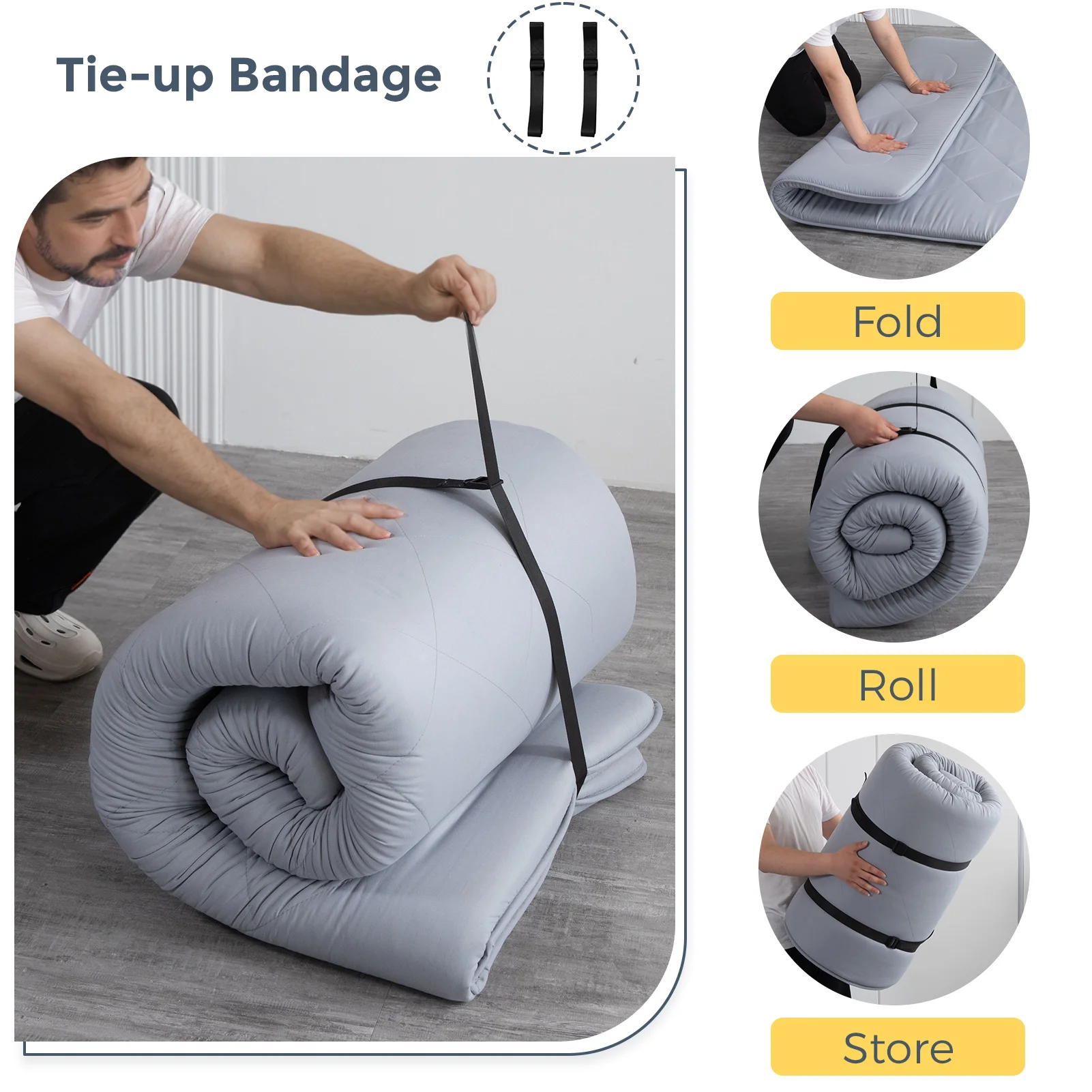2.5 Inch Mattress Futon Roll Up Mattress,Camping Sleeping Pad Grey – Full