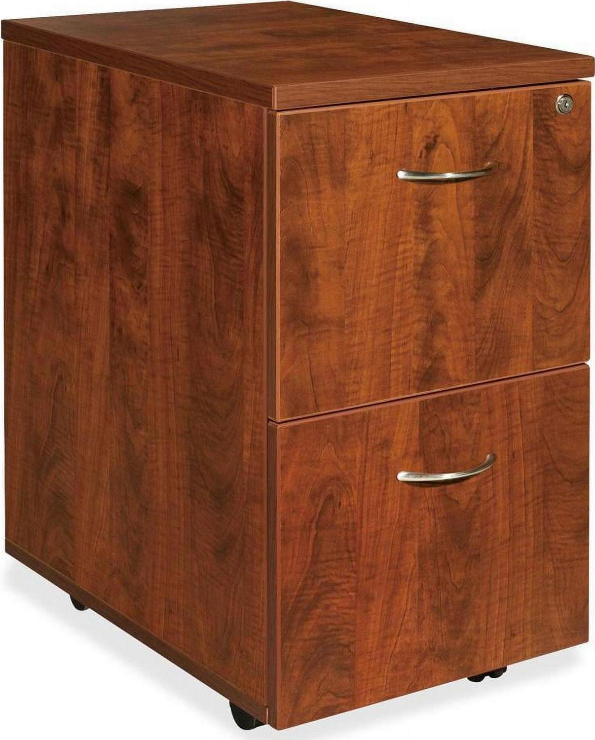 Mobile pedestal offers a file/file configuration and high-quality laminate construction that blends well with Lorell Essentials Series Laminate Furniture. The Essentials Series offers high-quality laminate construction and a contemporary design. Each file drawer includes hangrails and holds letter-size hanging folders with tabs. Locking pedestal rolls easily on four 1-1/2″ dual-wheel casters. Design also includes 96mm metal drawer pulls with a silver brush finish and 3mm PVC edges.